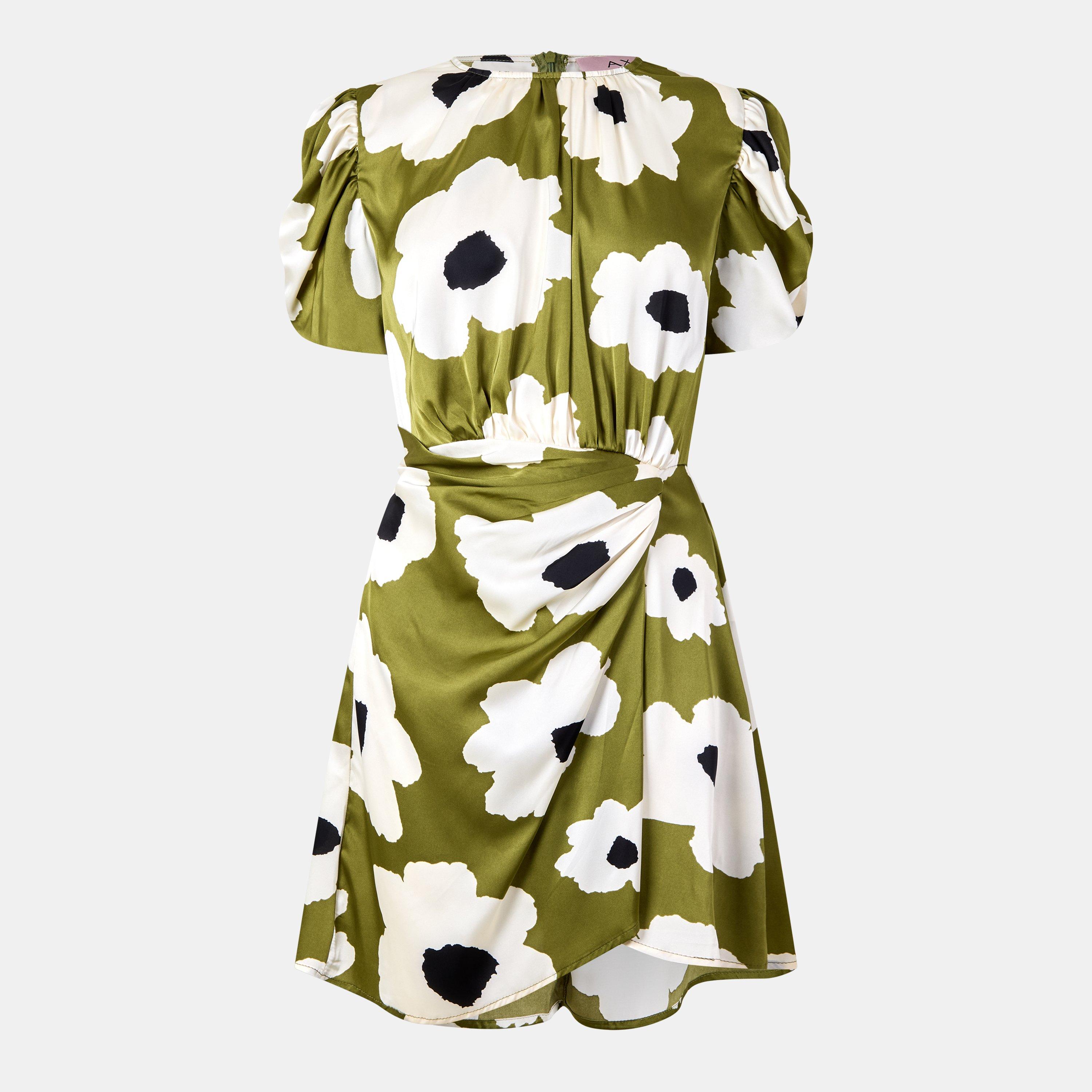 AX Paris Olive Floral Printed Short Puff Sleeve Gathered Side Mini Dress