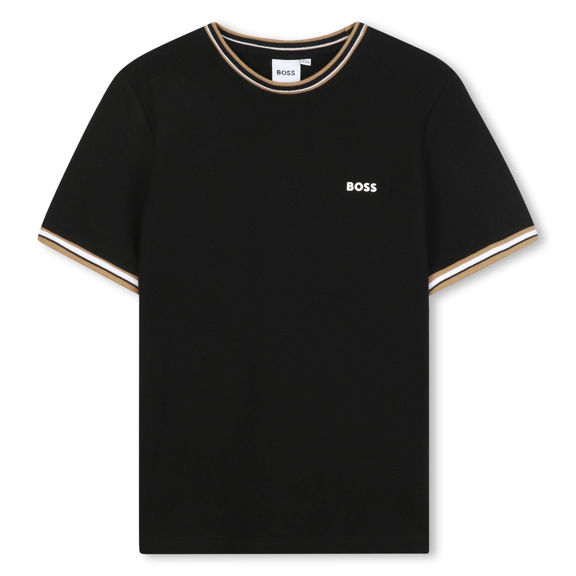 This BOSS pique short-sleeve tshirt delivers classic everyday style with a regular fit. Made in textured breathable fabric, this t-shirt offers comfort while maintaining a smart polo-style appearance great for casual or smarter occasions.