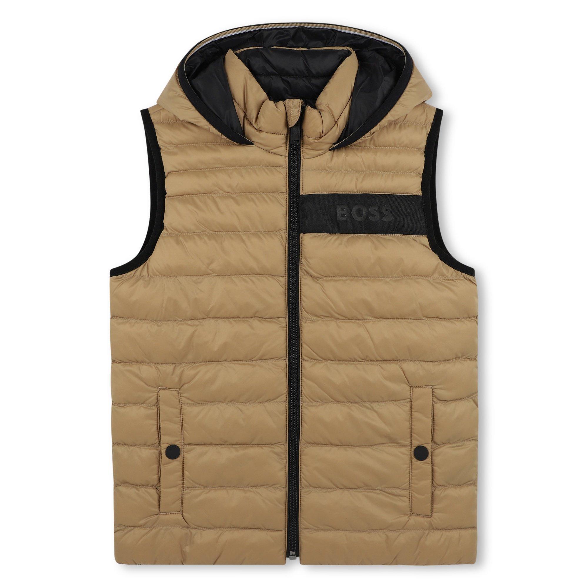 BOSS Kids' Reversible Sleeveless Gilet offers two different looks in one practical design. This adaptable sleeveless vest features different finishes on each side, making it a flexible addition to any young wardrobe with quality BOSS detailing throughout.