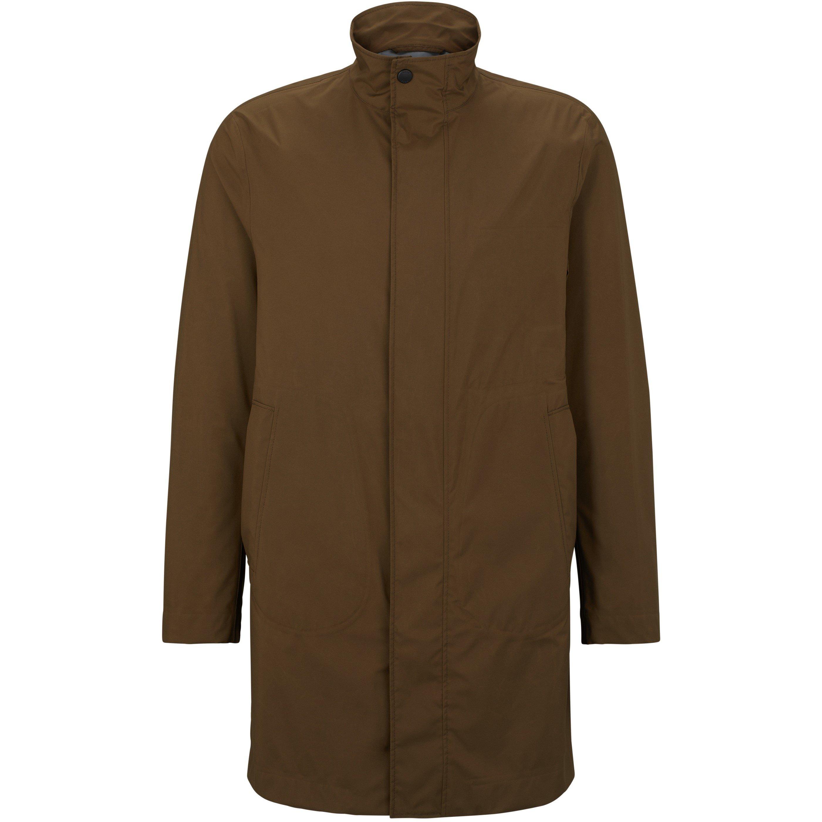 The P Jared Tape Overcoat from BOSS features a structured fit with clean lines. This outerwear piece is designed with tailoring details that make it suitable for various occasions.