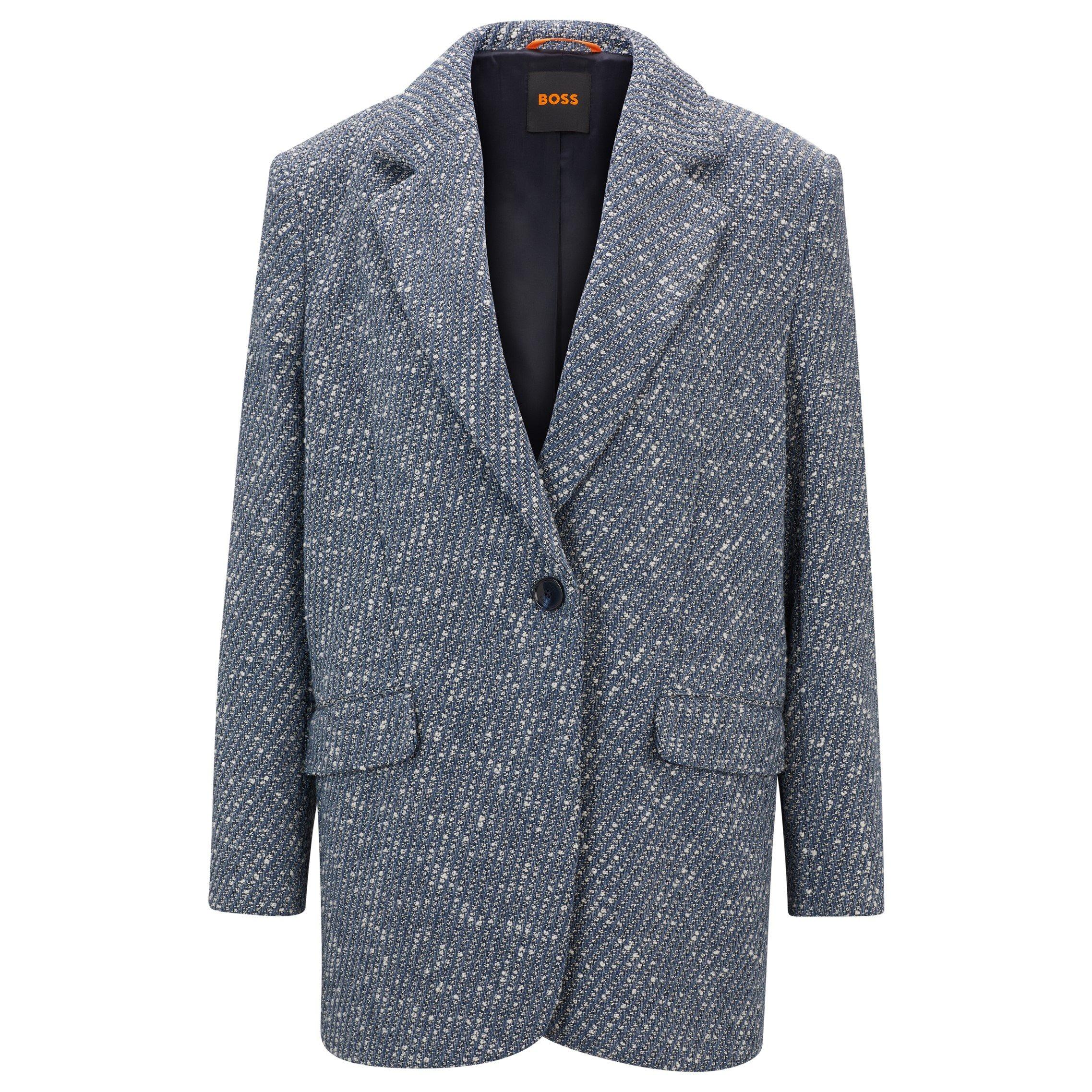 Update your professional wardrobe with this BOSS Business Jacket. The C_Jasoina1 design delivers expert tailoring with clean lines and a structured shape that transitions smoothly from boardroom to business dinner. Quality fabrication ensures this piece maintains its defined shape throughout your busy day, making it ideal to wear in any office environment.