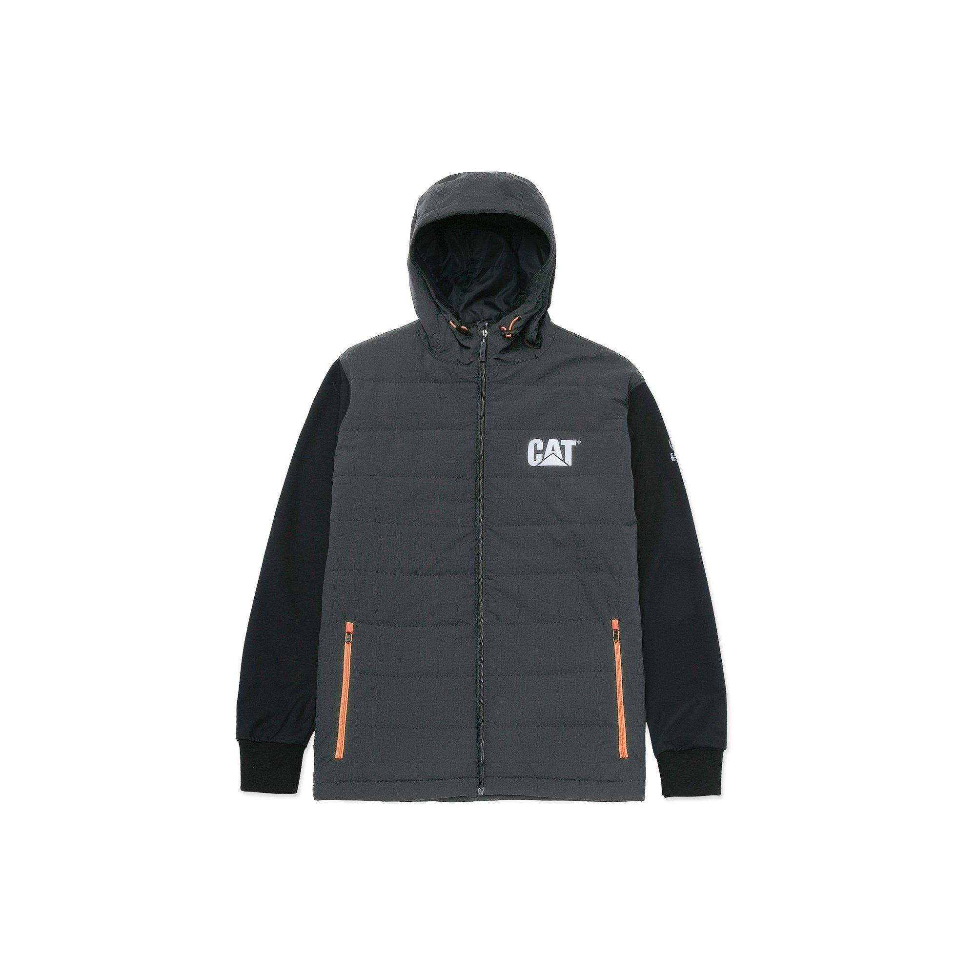 The Tech Hybrid Jacket features a center zip up closure with interior storm flap and two lower zip closure pockets, three interior pockets with one at the chest and two drop-in. It also has an elasticord adjustable 3-piece hood and hem.