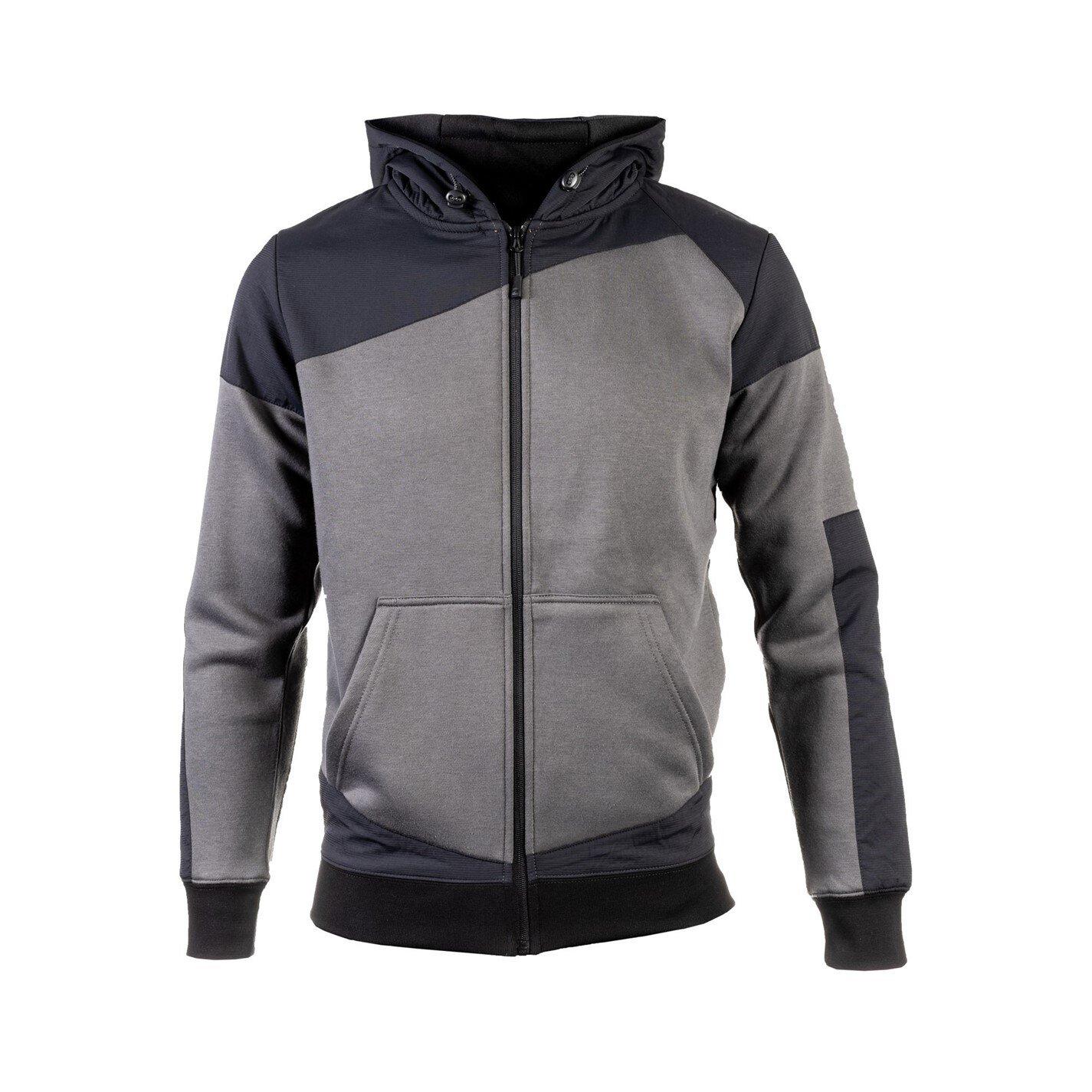 A versatile workwear zip hoodie. There is a thick and warm poly/cotton fleece blend and continue with contrasting, abrasion-resistant nylon overlays to add durability. This is a fitted garment, recommend to order a size up.
