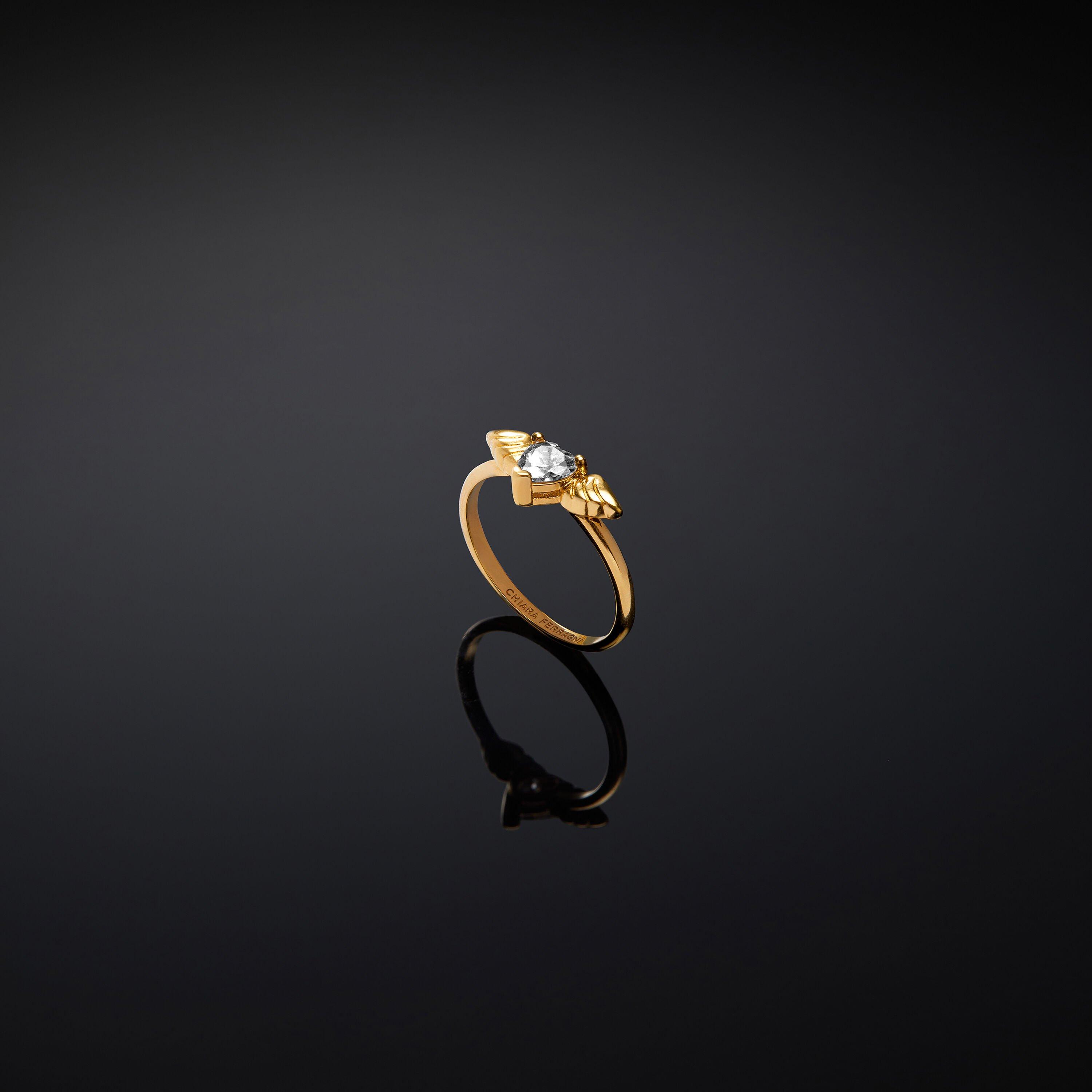 Chiara Ferragni's Cupido Band Ring balances minimalist design with charm. This designer jewellery piece features a sleek band profile ideal for stacking.