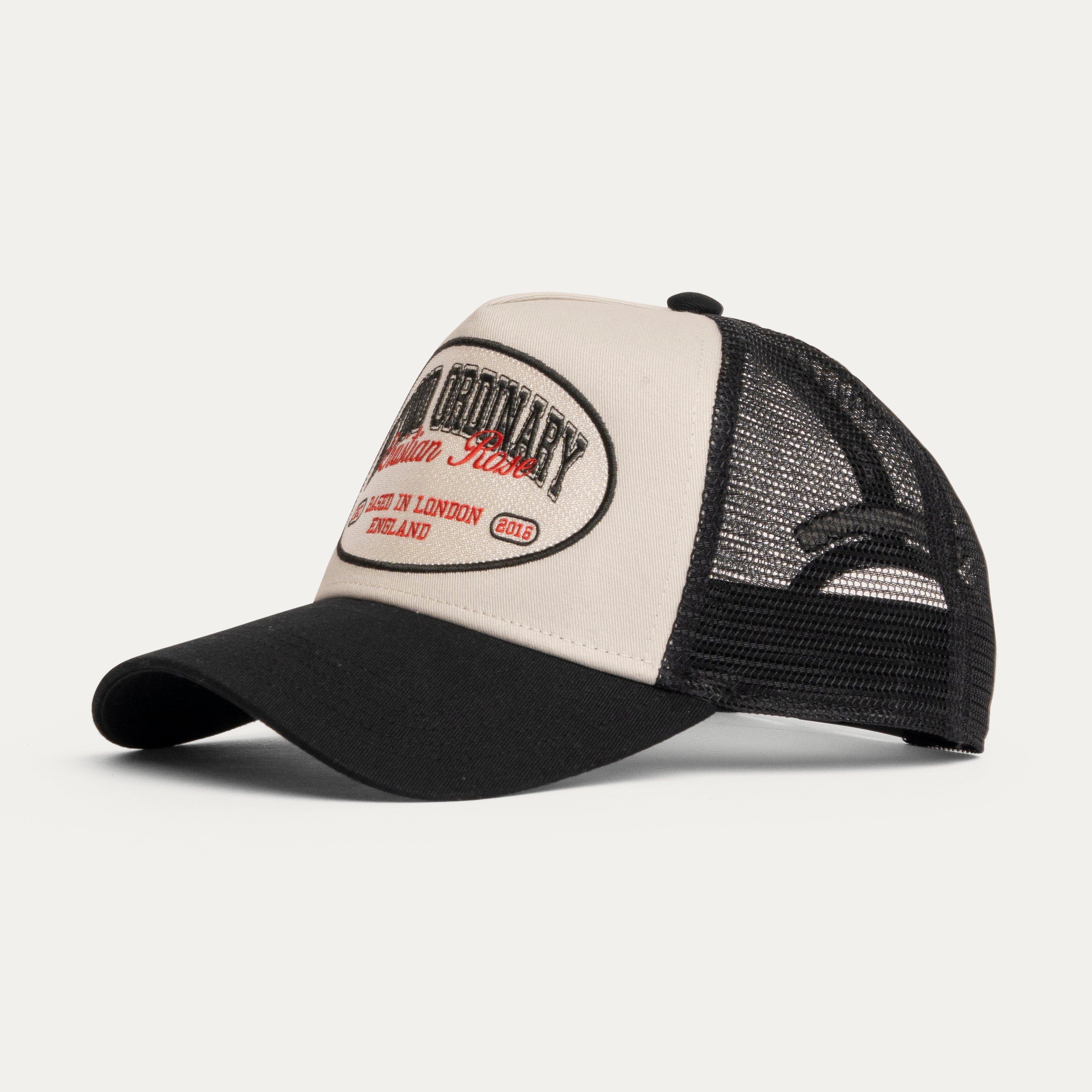 Christian Rose's Beyond Ordinary Trucker Cap pairs classic trucker hat styling with contemporary design elements. The structured front panels and breathable mesh back provide comfort and style, while the adjustable snapback ensures a customised fit for everyday wear.