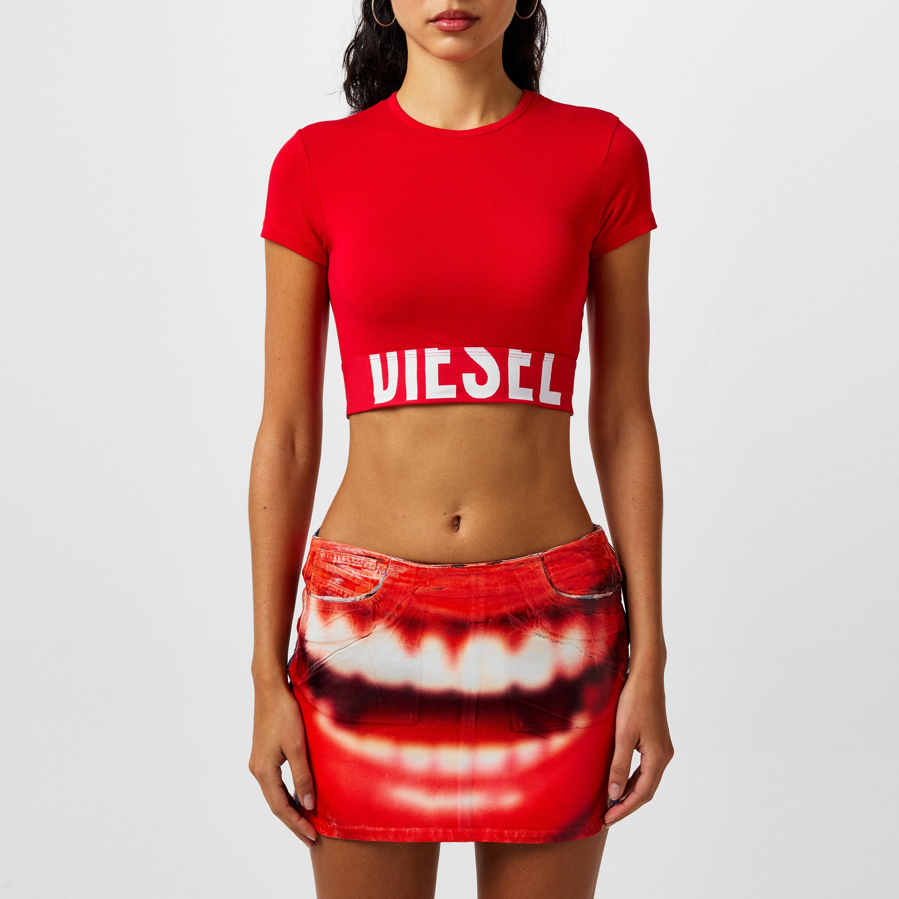 Diesel presents the Uftee-sport Cropped T-shirt, a brand renowned for its rebellious and unconventional luxury fashion. Adorned with cut-off oversized branding creating a distinctive finish. From casual outings to simply running errands, this crop top is a wardrobe staple.