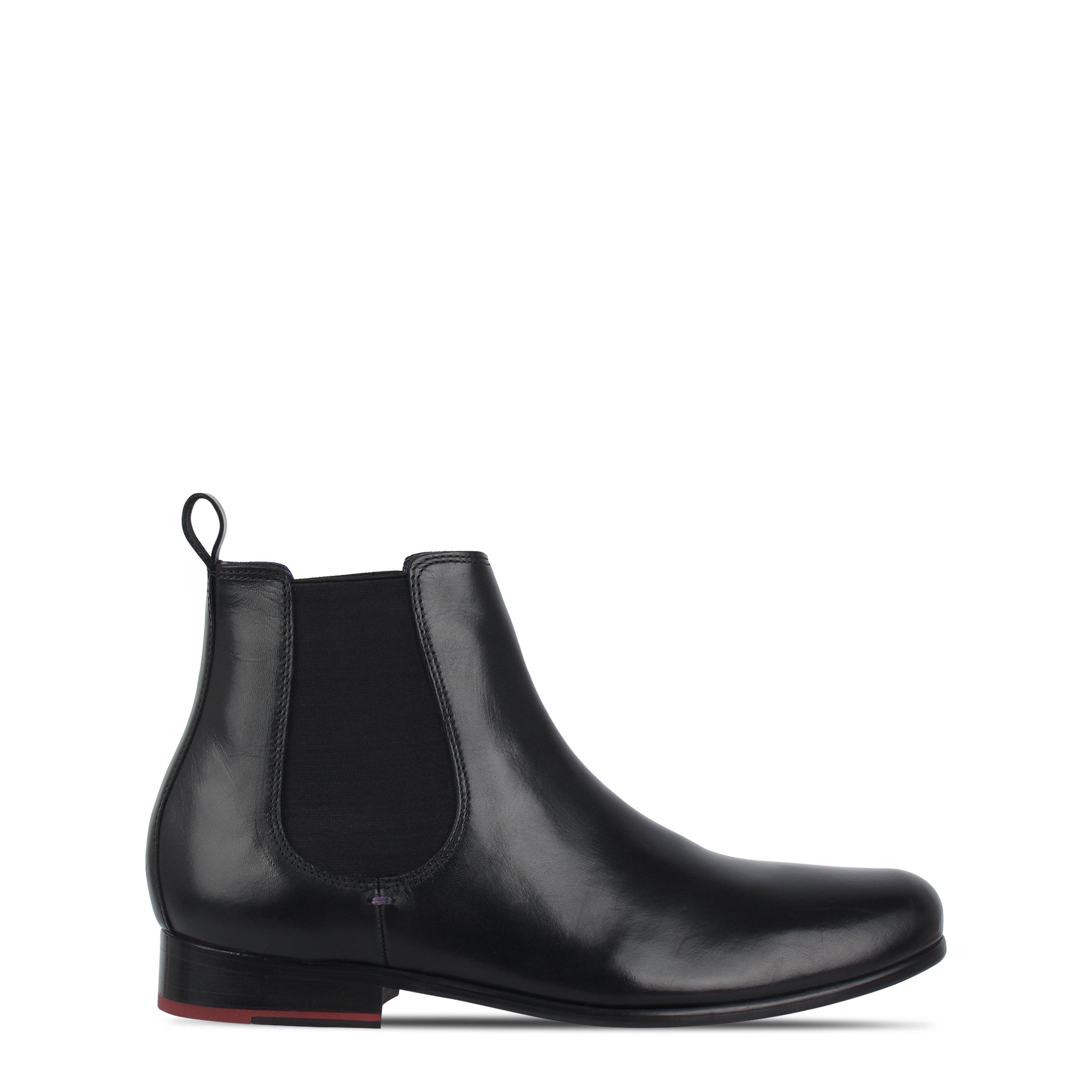 Product Features: Premium leather construction Elastic side panels Pull-on tab Low block heel Rounded toe Versatile style
