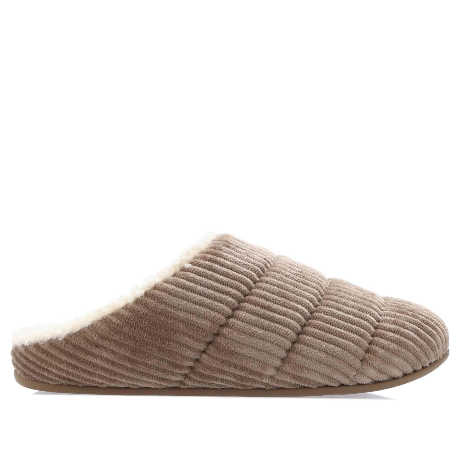 Womens Fit Flop Chrissie Fleece-Lined Corduroy Slippers in mink.