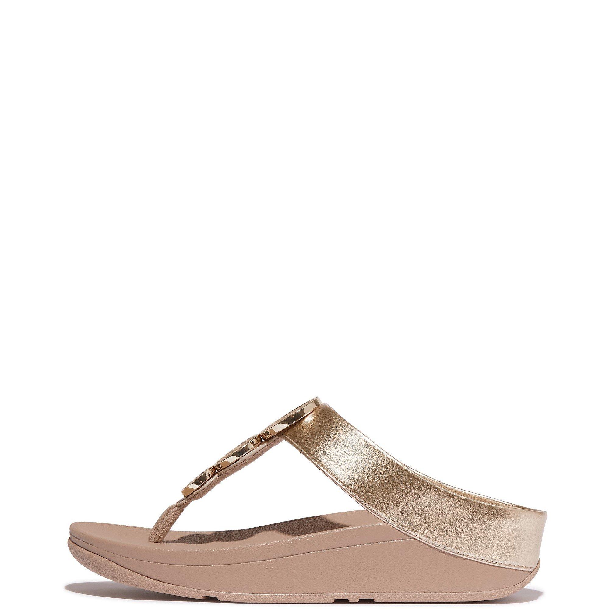 Soft uppers crafted in metallic pearlized faux-leather, including the toe post, add extra lustre.