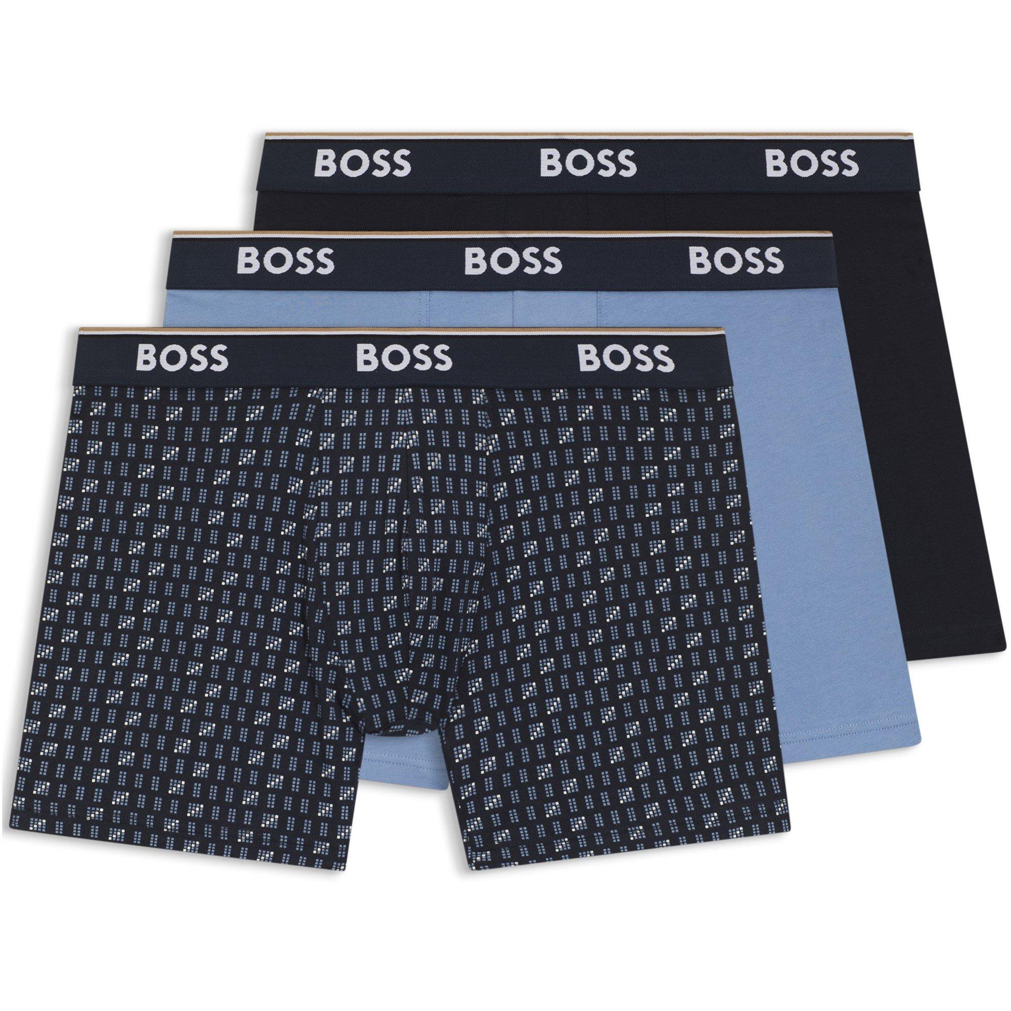 Premium comfort meets signature style with these BOSS boxer briefs, arriving in a practical three-pack for daily wear. Made with quality cotton, these boxers feature the iconic BOSS logo waistband that adds a distinctive touch to your essentials collection. The mid-length design and contoured pouch deliver lasting support throughout the day, while the streamlined fit ensures they sit smoothly under clothing.