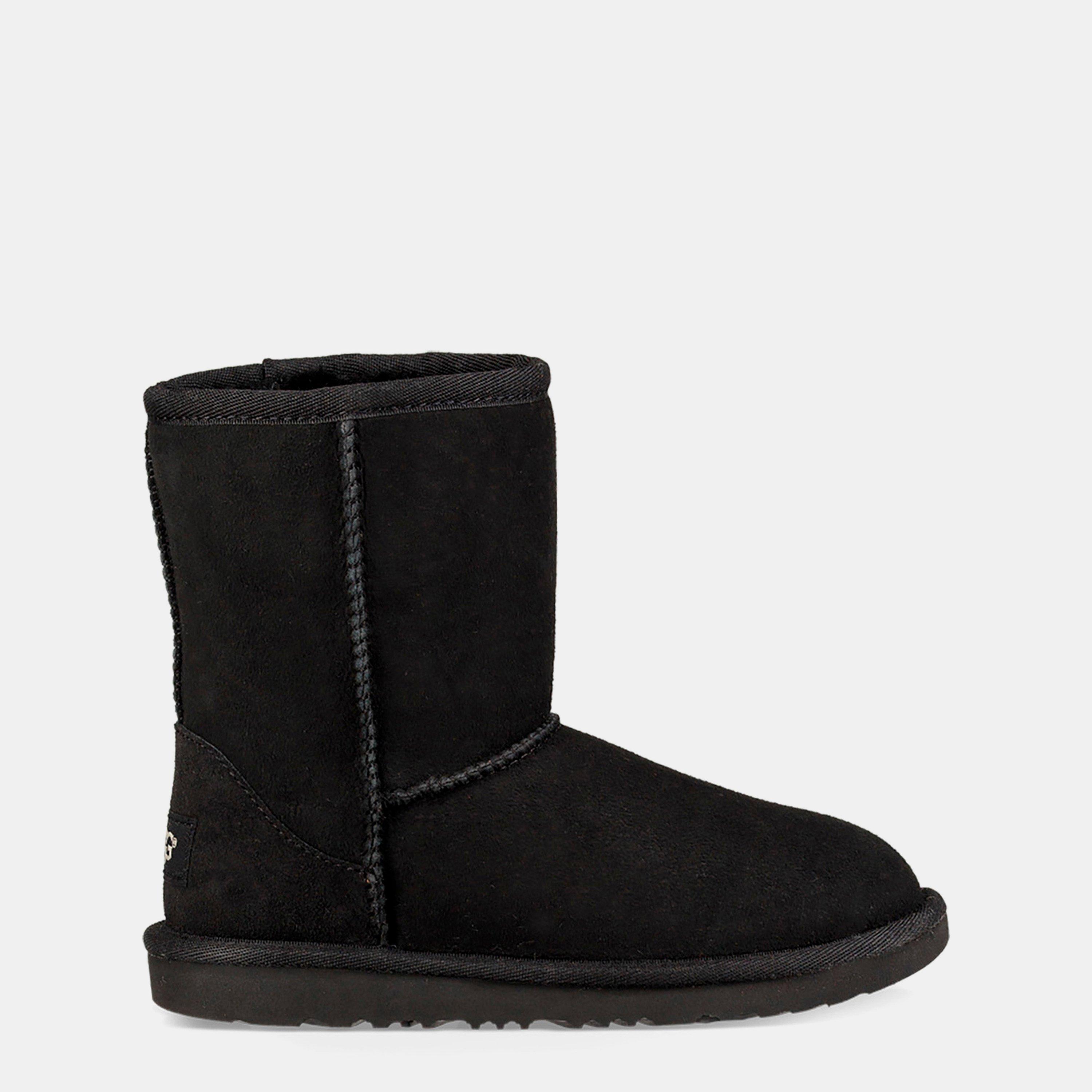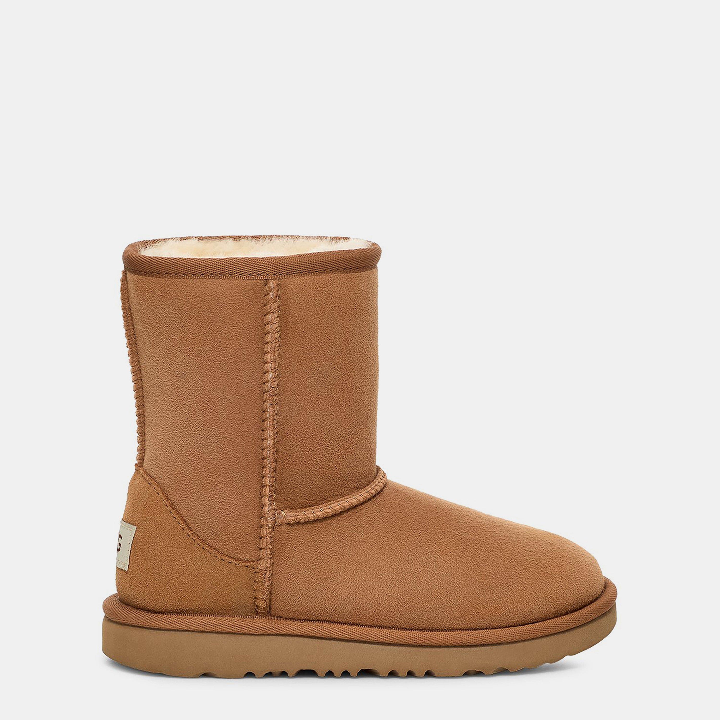 Luxurious comfort meets timeless style in these signature UGG boots. Premium suede and plush sheepskin combine to create the ultimate cosy footwear for little feet. The Classic II features the brand's signature silhouette with precise stitching detail and a durable sole that provides reliable grip for everyday wear. A practical pull-on design makes these boots an easy choice for busy mornings.
