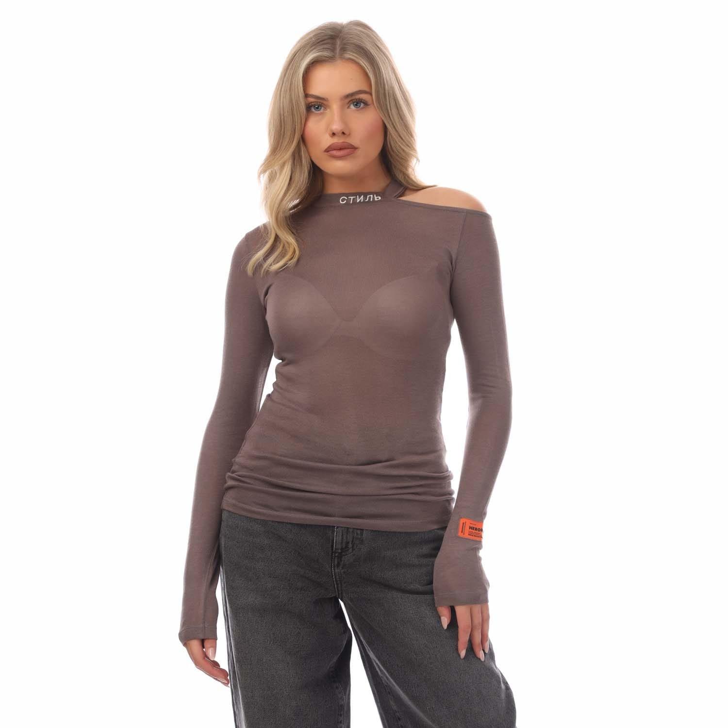 Heron Preston Cut Shoulder CTNMB Crewneck Sweater in grey - white.
