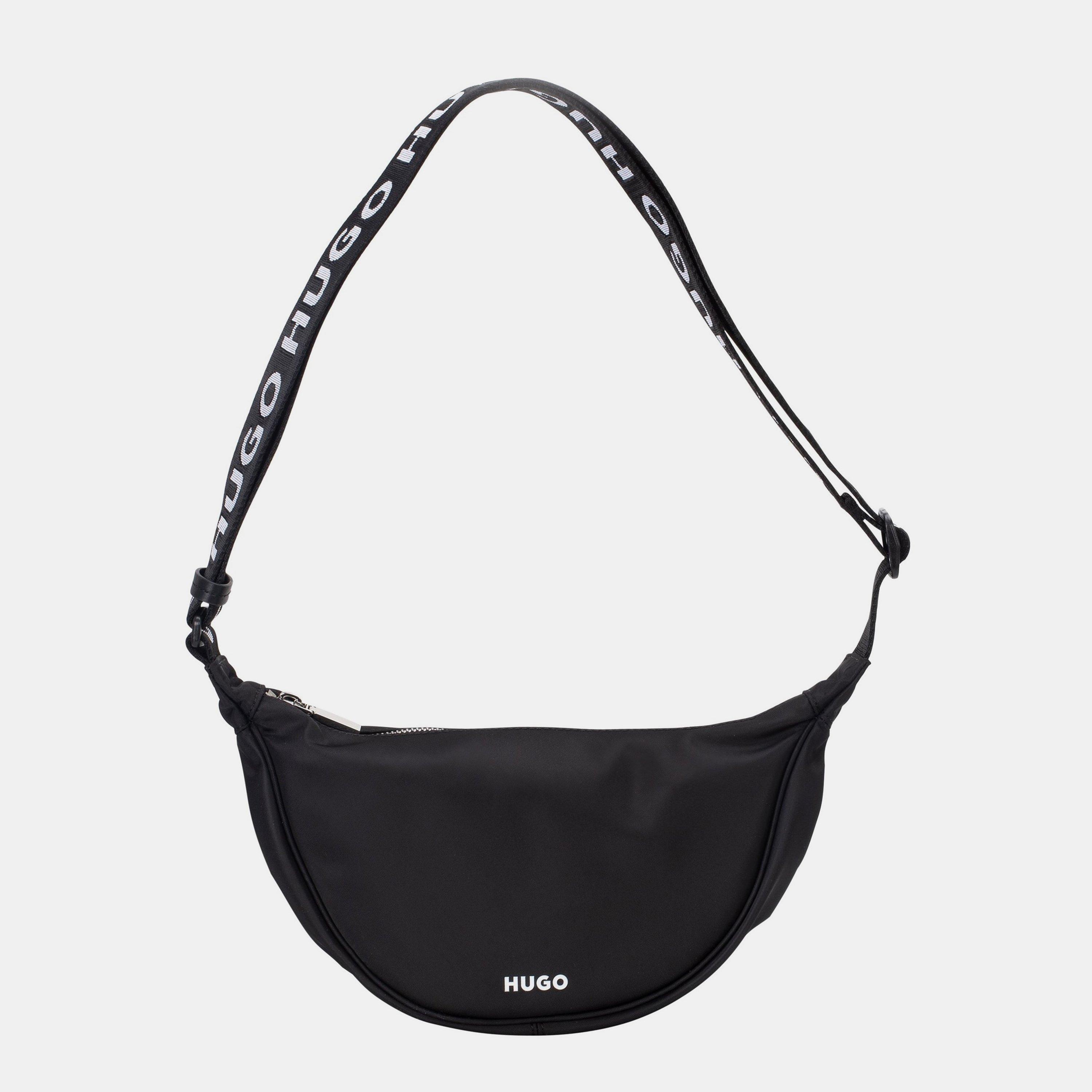 Adjustable canvas crossbody strap adorned with contrasting Hugo branding for a designer stamp while offering a personalised fit.