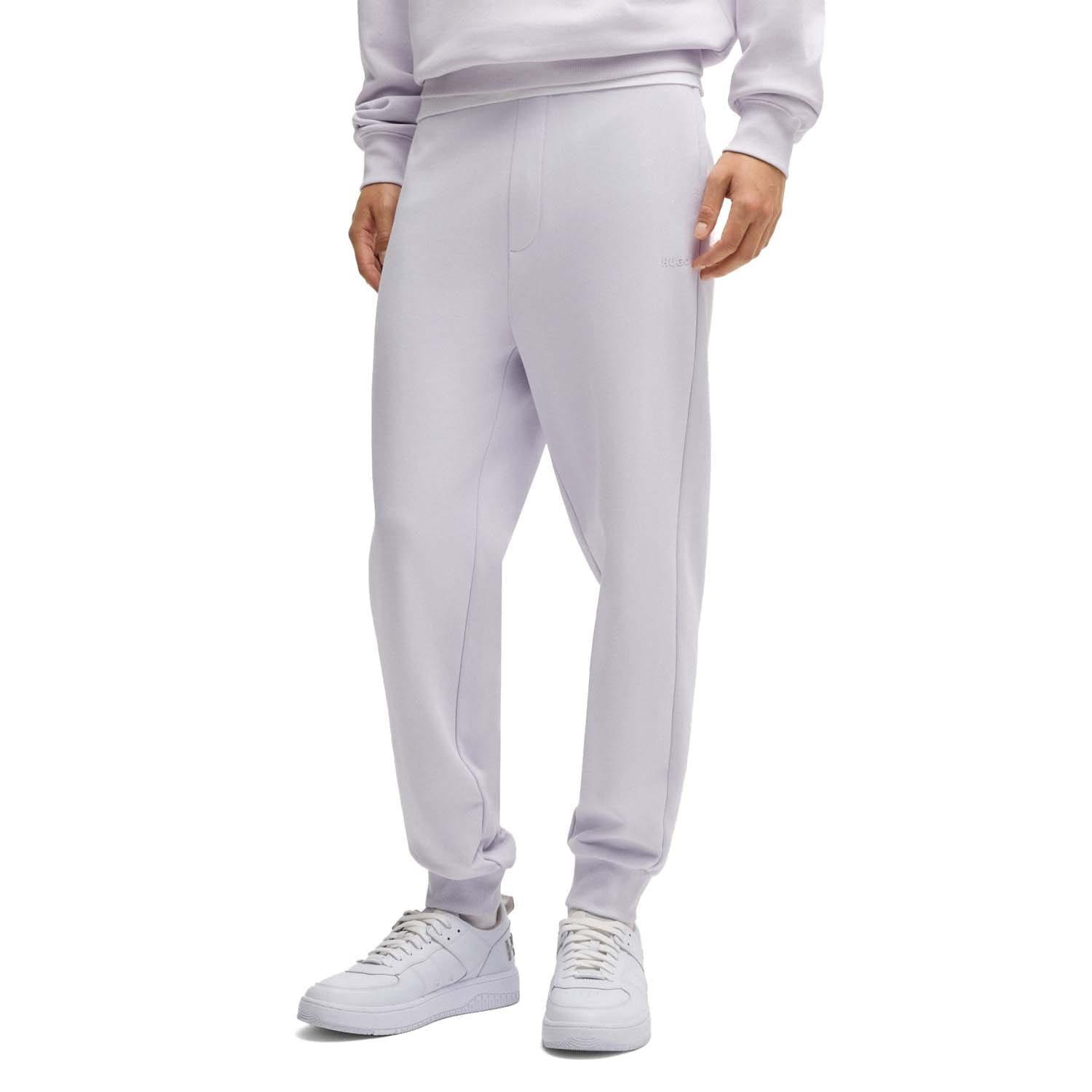Mens HUGO Dayote232 Cuffed tracksuit bottoms in cotton terry with logo print in light - pastel purple