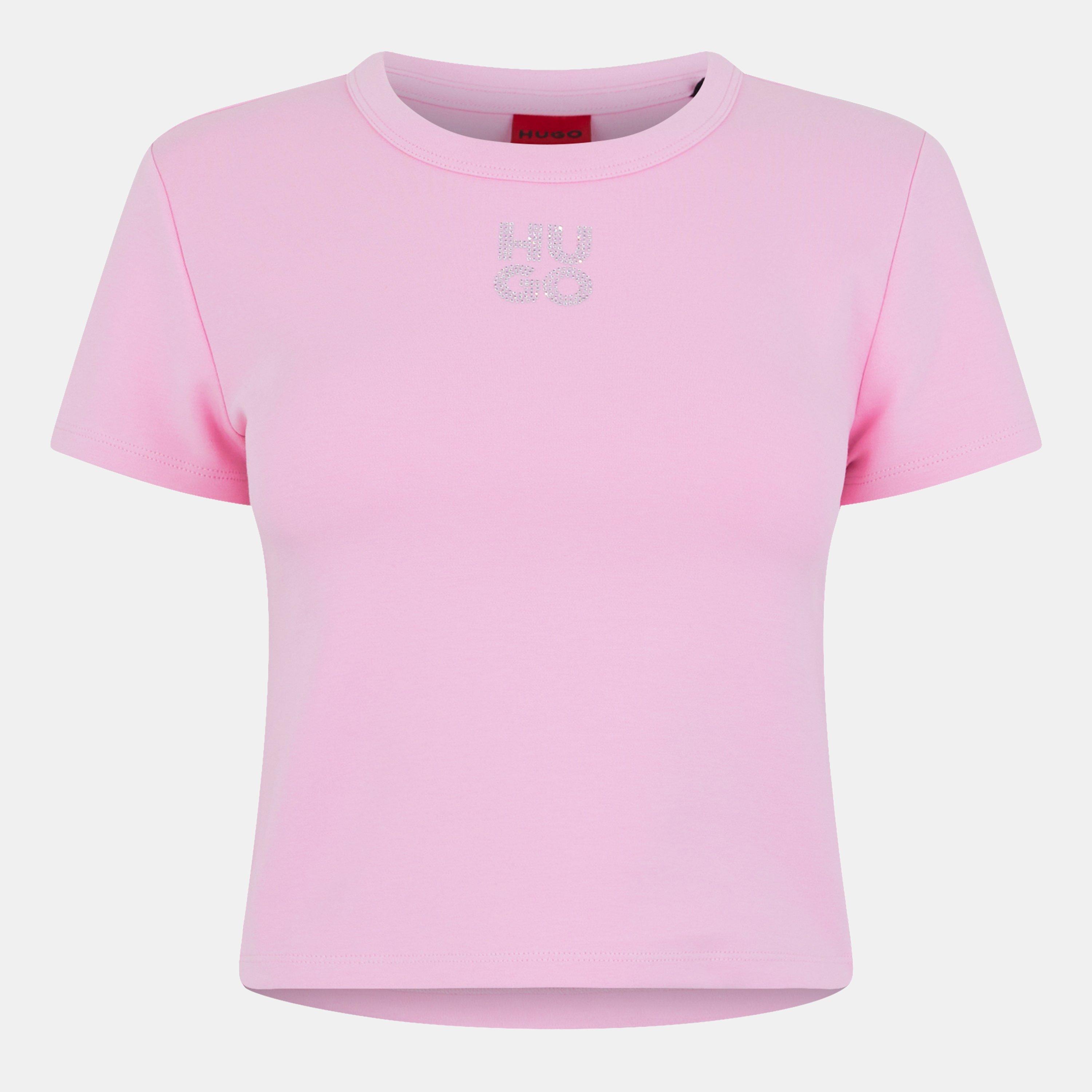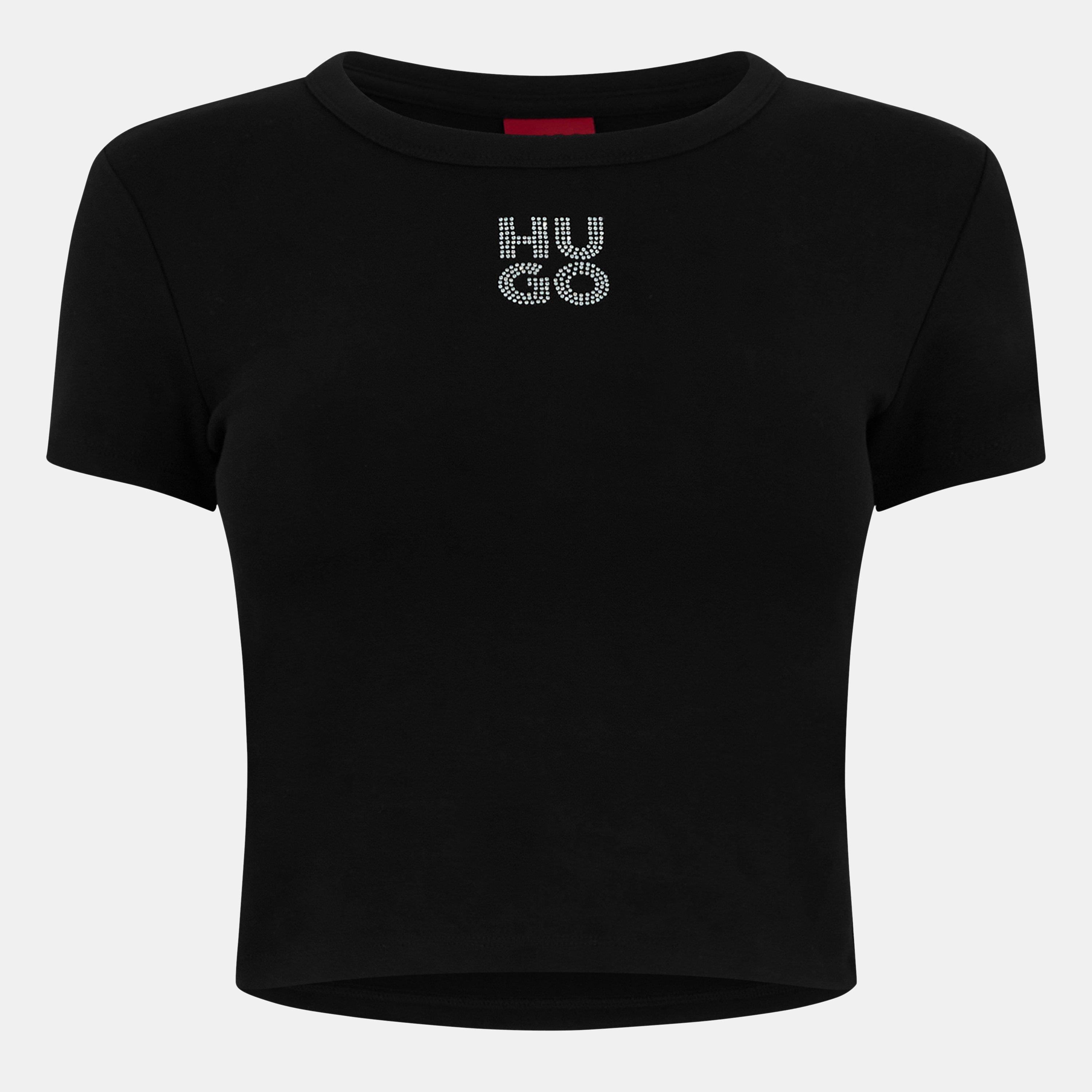 Hugo sets the scene with the deluxe Delanor Cropped T-Shirt, featuring a glitzy diamante embellished stacked logo for an upscale touch. Whether it's a day outing or a night on the town, this statement piece effortlessly elevates your style game.