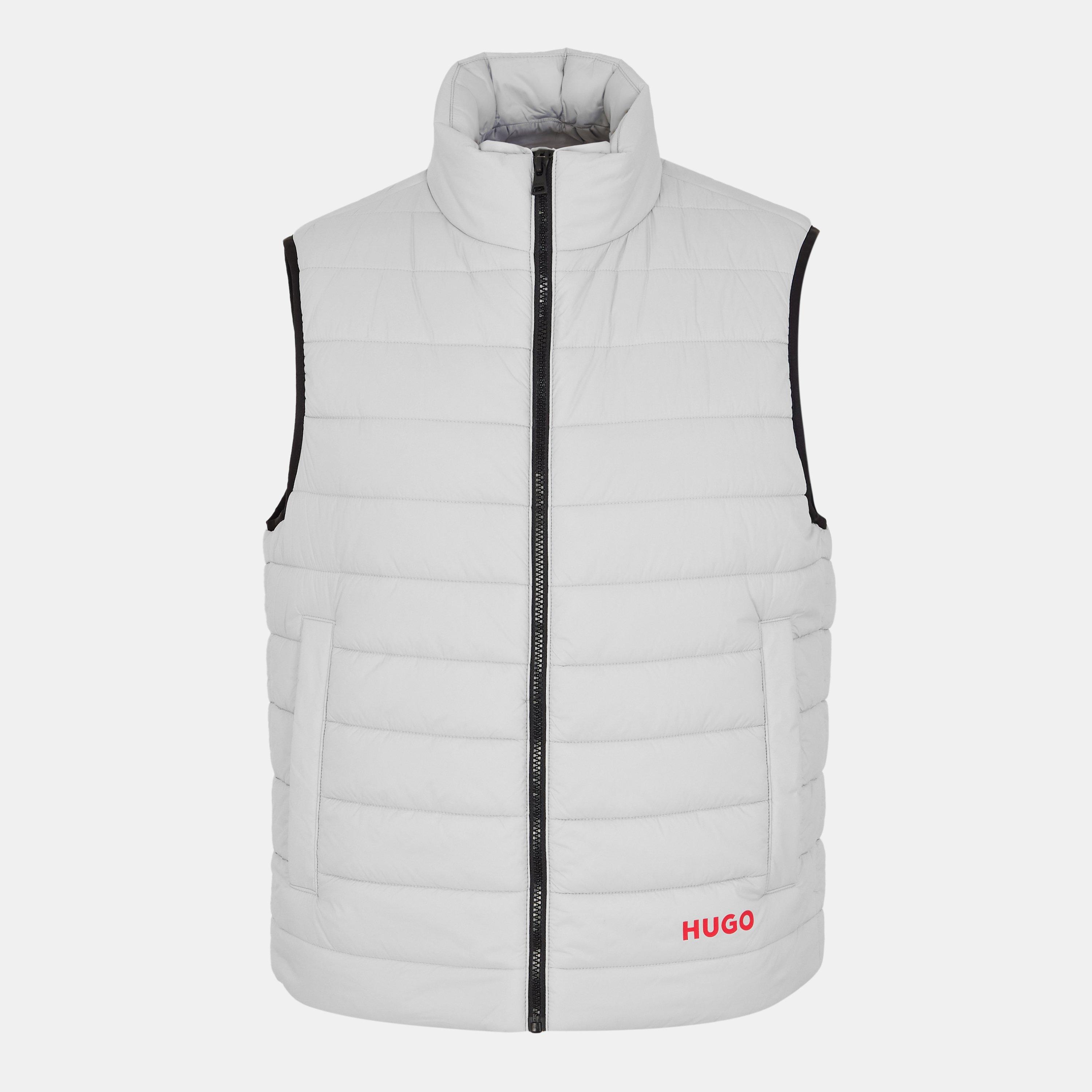 The Hugo Brentino Sleeveless Full Zip Gilet offers lightweight adaptability for your transitional wardrobe. Featuring adjustable bungee cords at the bottom edge for a customised fit and bold HUGO branding, this standard-fit vest merges practical design with contemporary fashion style.