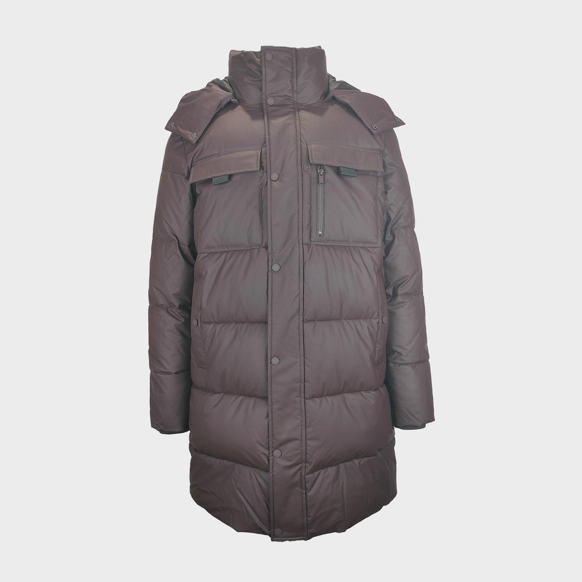 Crafted with a stand collar and hood for added warmth and coverage.