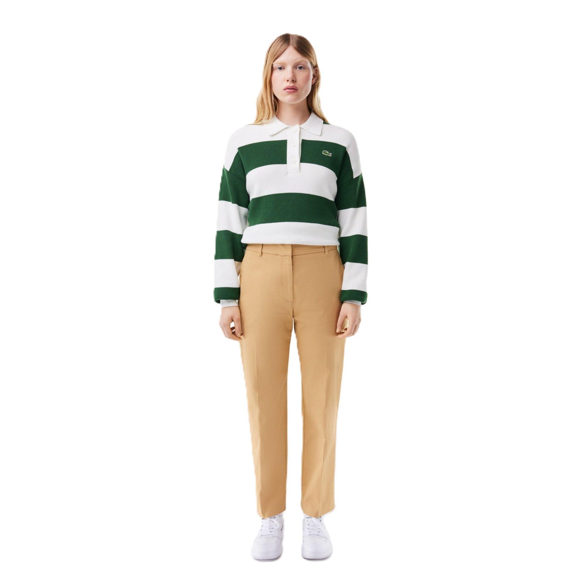 Lacoste's Women's Tapered Trouser pairs fine tailoring with the brand's characteristic sporty style. The streamlined cut narrows toward the ankle, creating a flattering shape that transitions smoothly from office to evening.