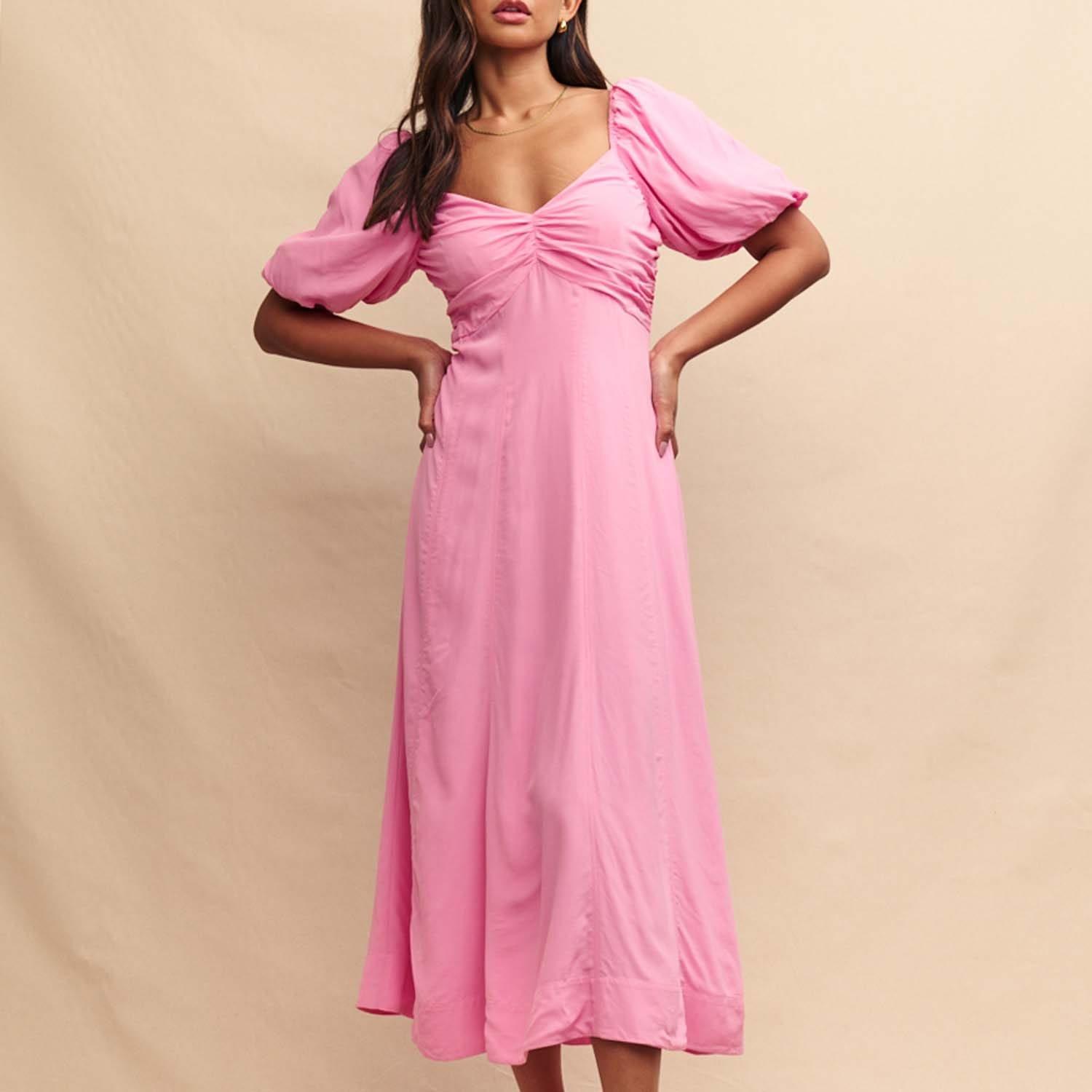 Show up in style. This summer-infused dress comes in a pale pink. We,re obsessed with this trending shade right now inspired by peony flowers. Finish yours with gold jewellery for that event you,ve got coming up.