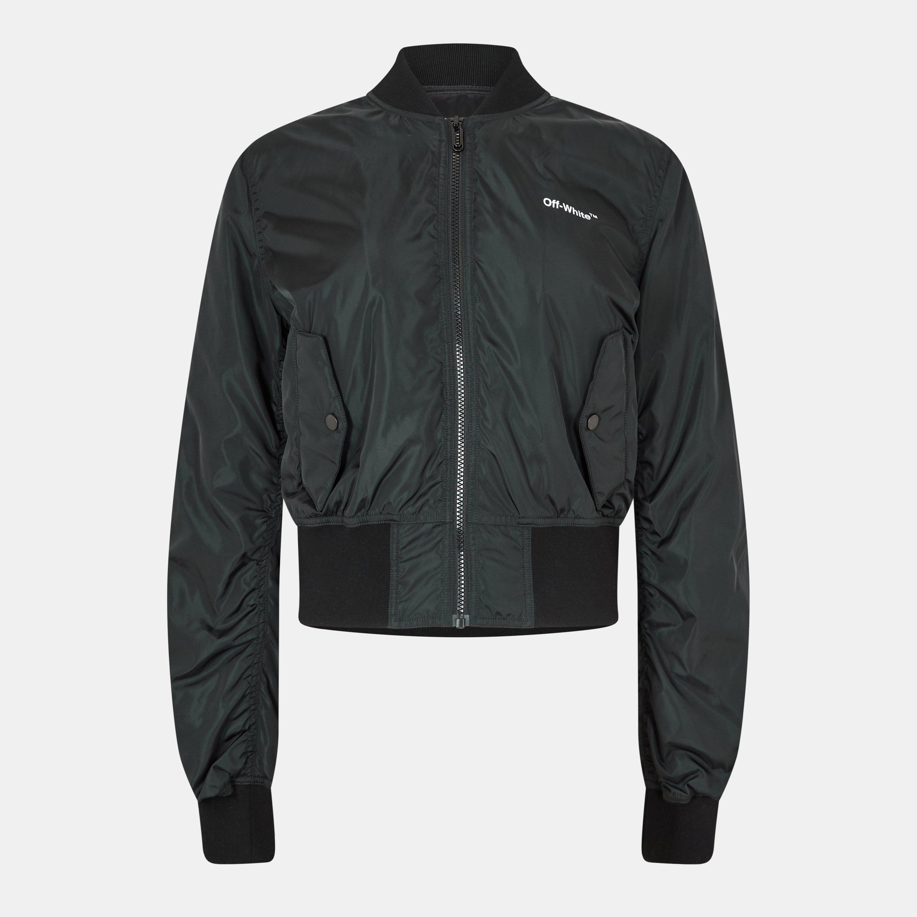 Off White Women's Diag Stand Collar Long Sleeve Cropped Bomber Jacket