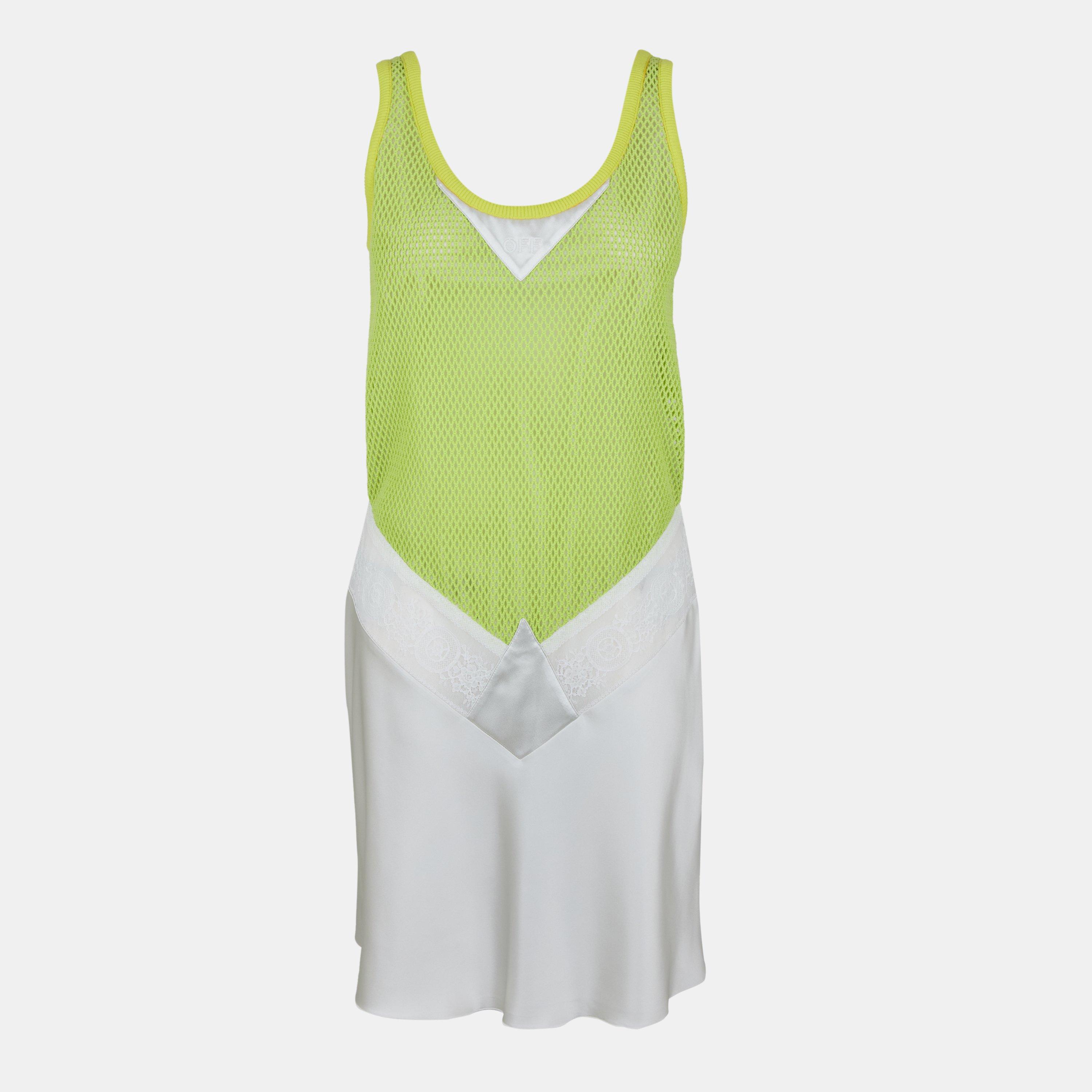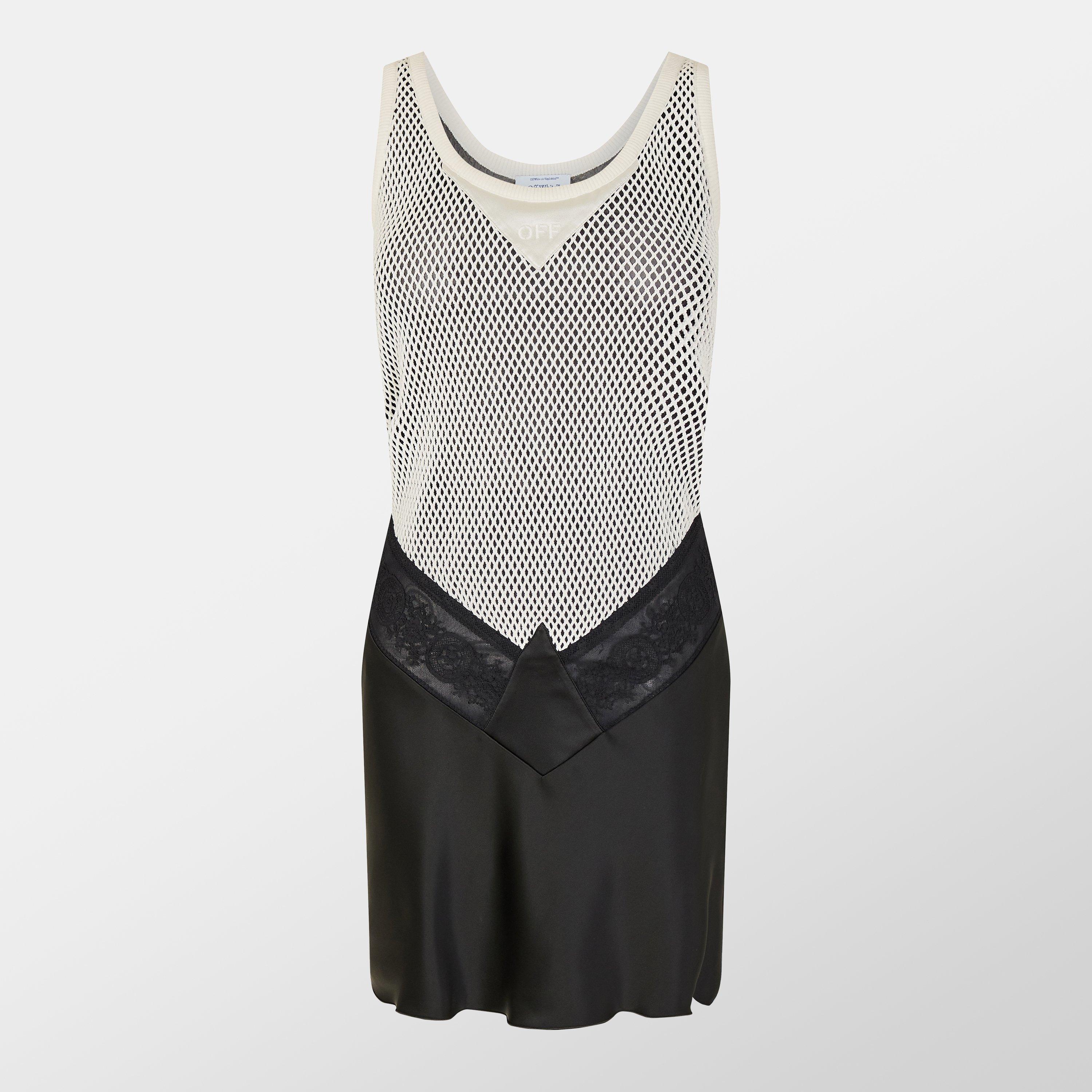 The Fishnet Mini Dress from Off-White pairs modern design with bold feminine style. The fishnet pattern creates visual texture while maintaining a clean shape, making this a standout piece. The design can be styled in many ways.