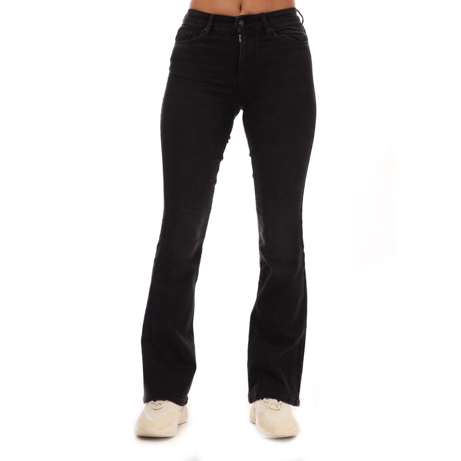 Womens Only Ann Mid Rise Flared Jeans in black.