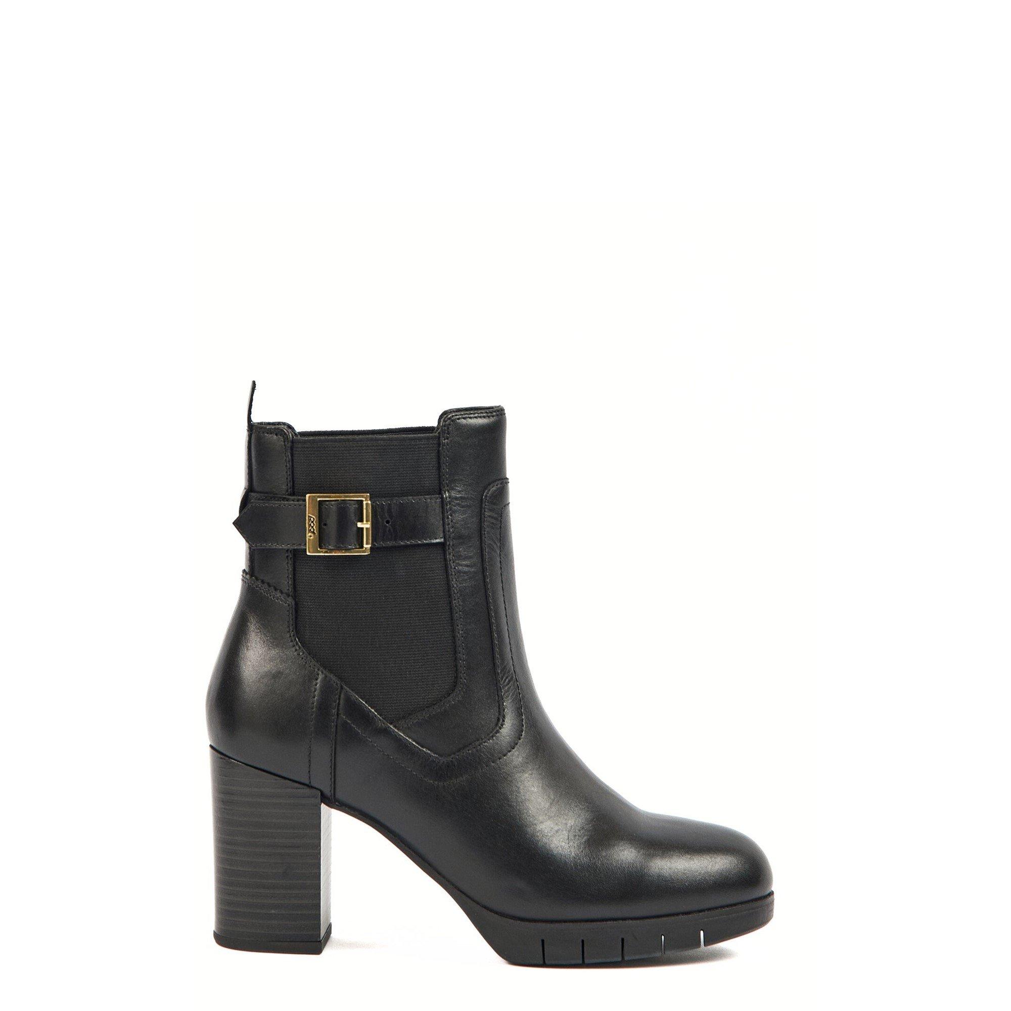 The NALA ankle boots re trimmed with gold buckles and feature an inside zip and elasticated panels for easy on-and-off. They've been made from smooth black leather and have a platform sole and 85mm block heels that offer height and stability.