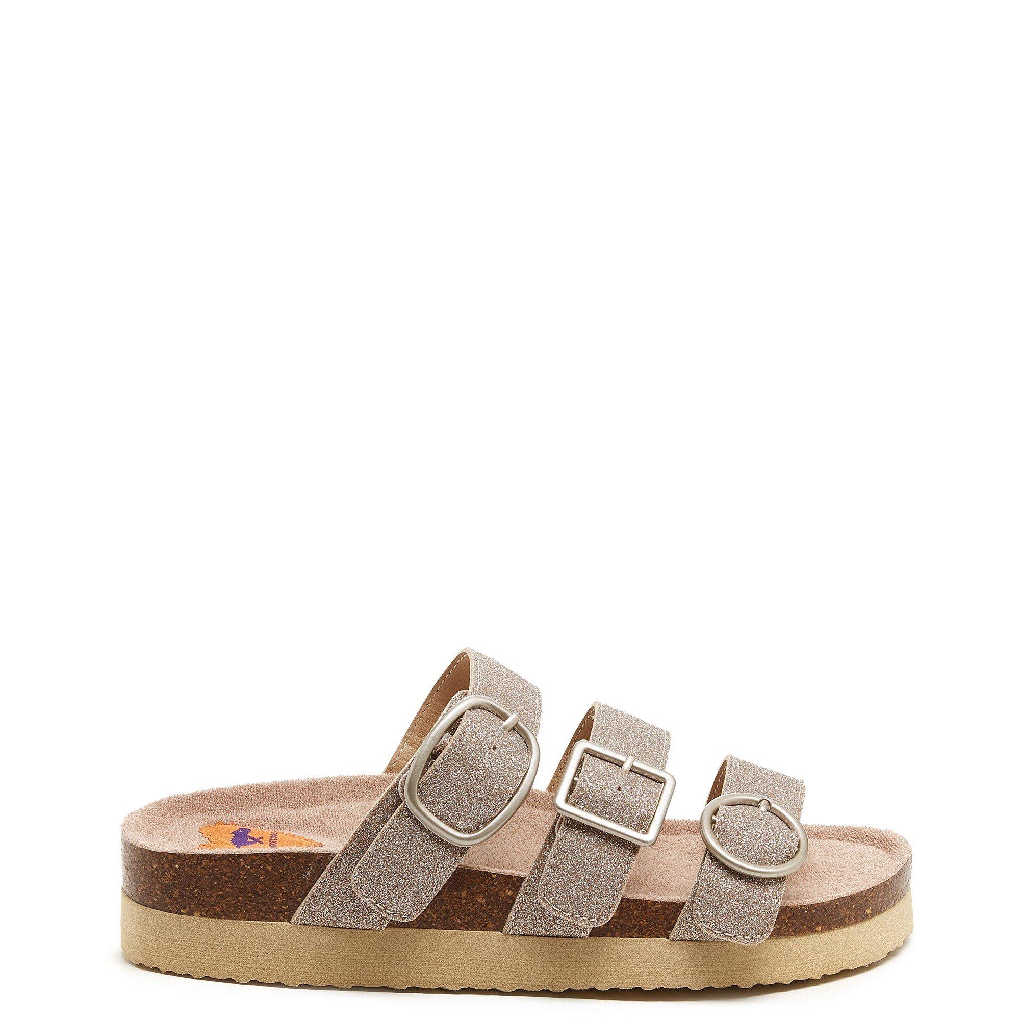 Make every step sparkle in Rocket Dog's Astor Black Glitter Slides. Adjustable straps meet a comfy 2 CM lift. Style with jeans or dresses for that perfect shimmer.