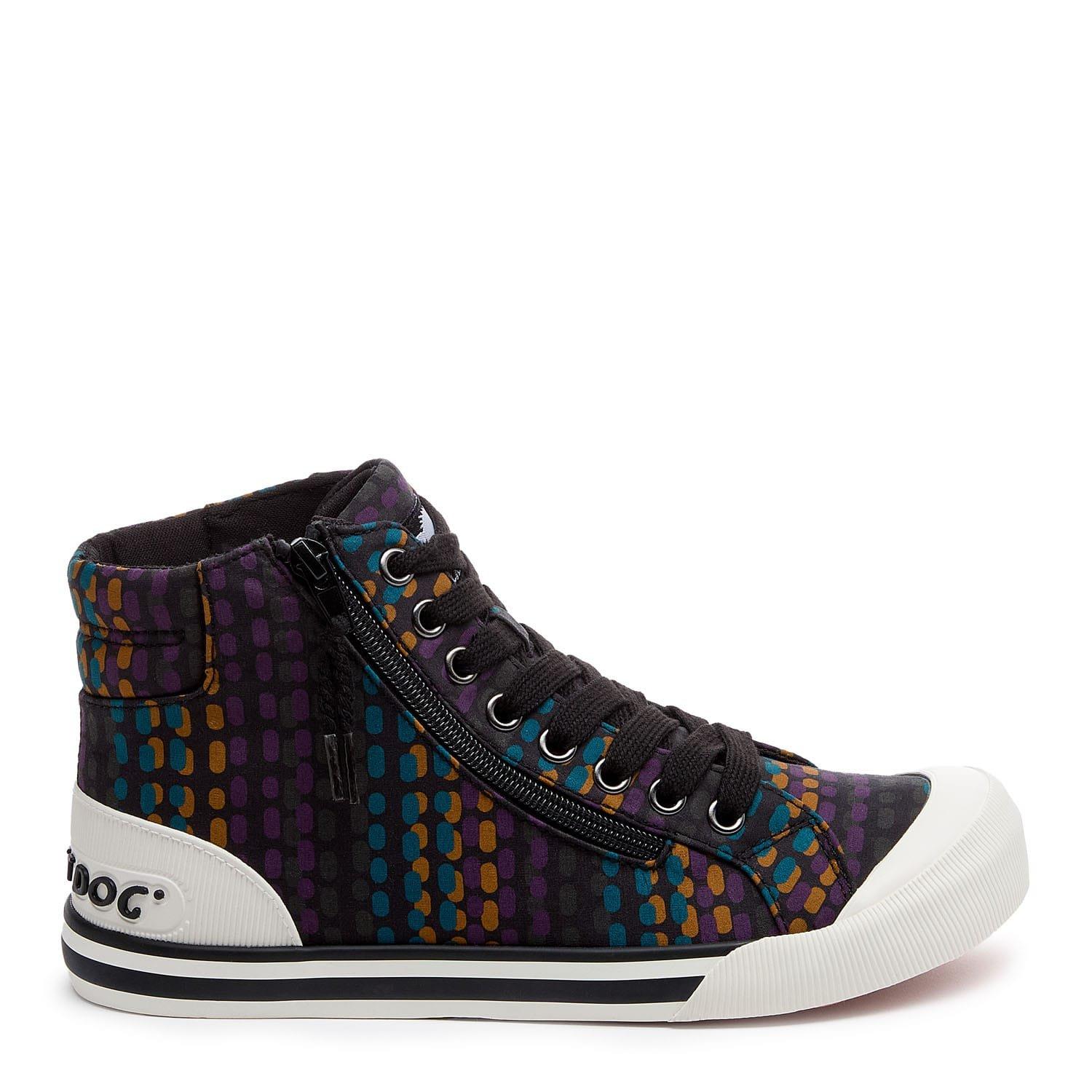 When your outfit needs a bit of fun these Jazzin high-tops are the answer. The bold multicolour cotton upper adds personality without trying too hard and the side zip means you're out the door in seconds. They,re comfy enough for long walks and cute enough for city brunches school pick-ups or that one day you,ve accidentally triple-booked. Soft jersey lining and our signature Plush Foam Comfort Insole mean they feel as good as they look.