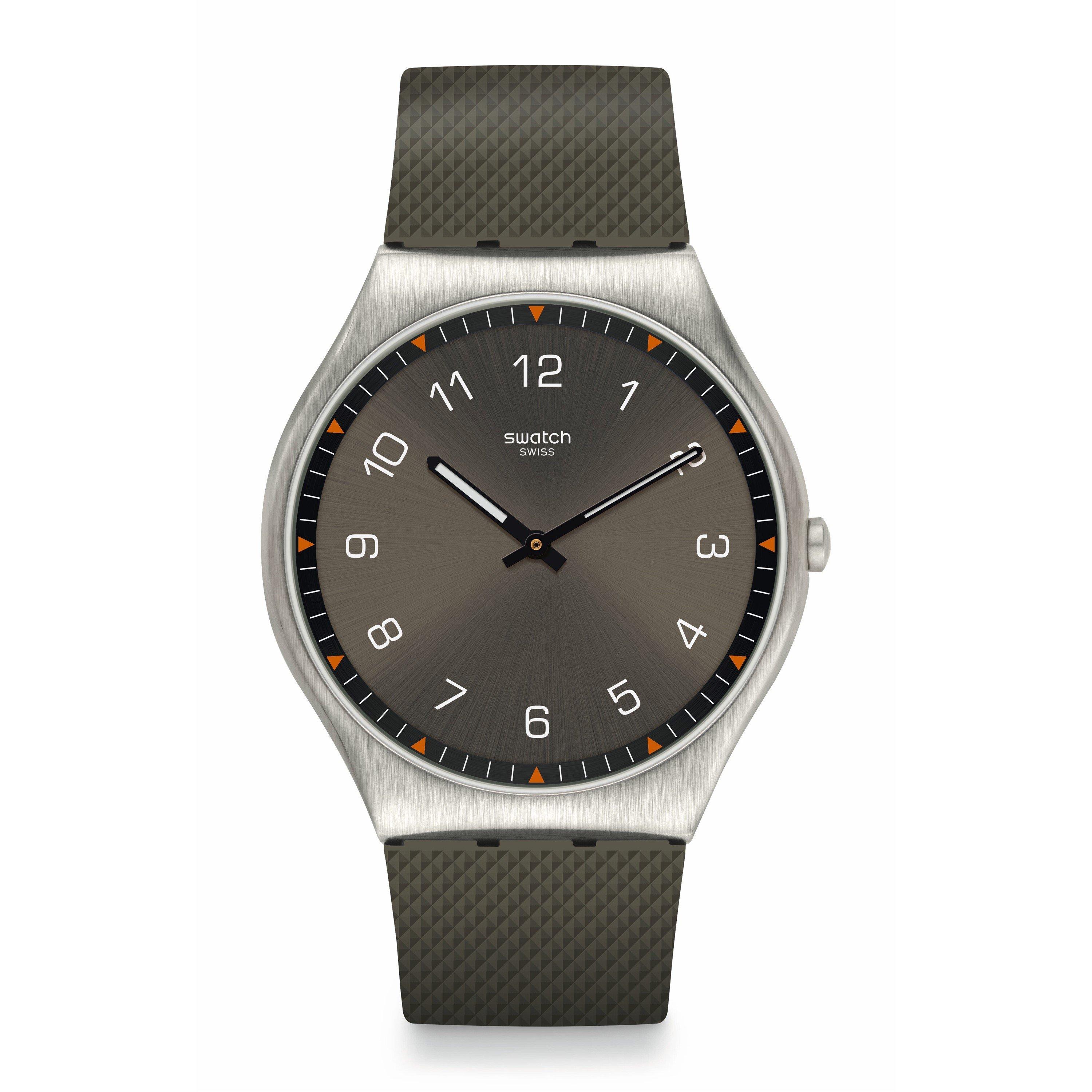 Swatch's Skin Irony Slim Quartz Analogue Watch pairs precision engineering with a slender profile. The analogue display sits elegantly on the wrist.