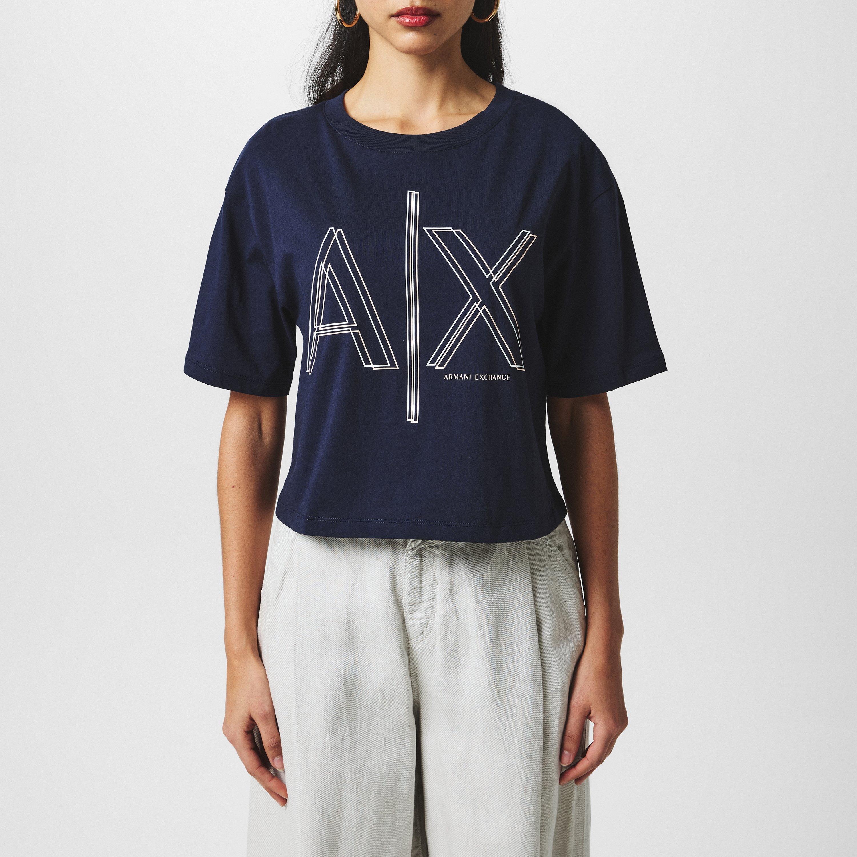 Armani Exchange's Crop Tops for women feature clean lines and cropped proportions. The designs include minimal branding for easy styling.