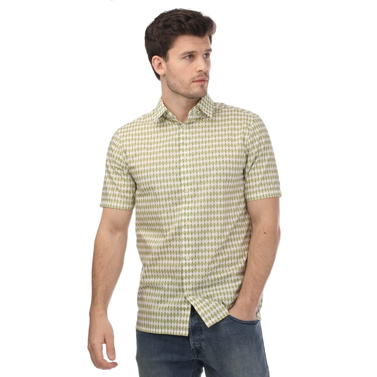 Classic collar. Short sleeves. Full button fastening. Bolt geometric mint leaf print.