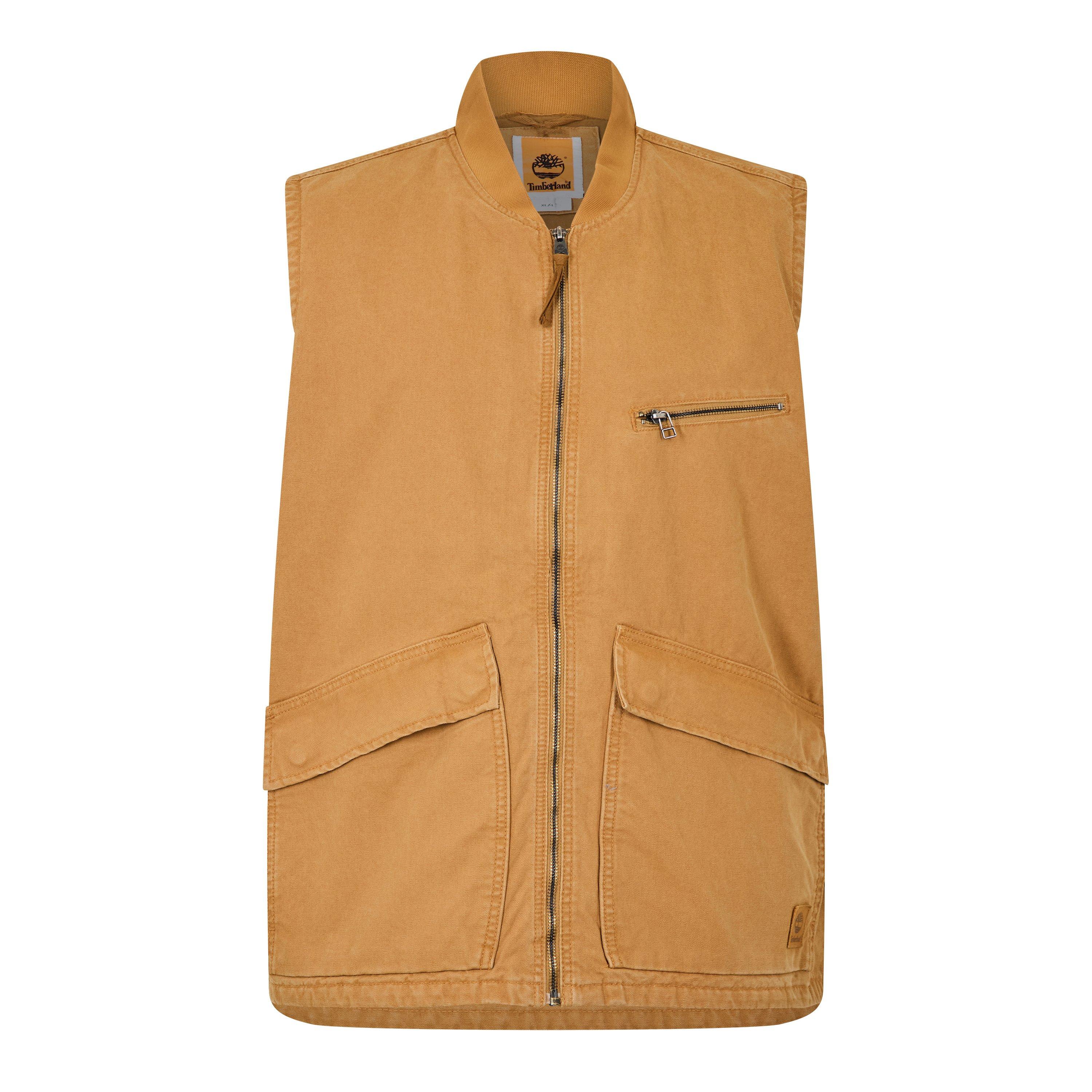 The Timberland Washed Canvas Gilet delivers flexible styling in a sleeveless design. Its washed canvas fabric brings texture and visual depth without excess weight.