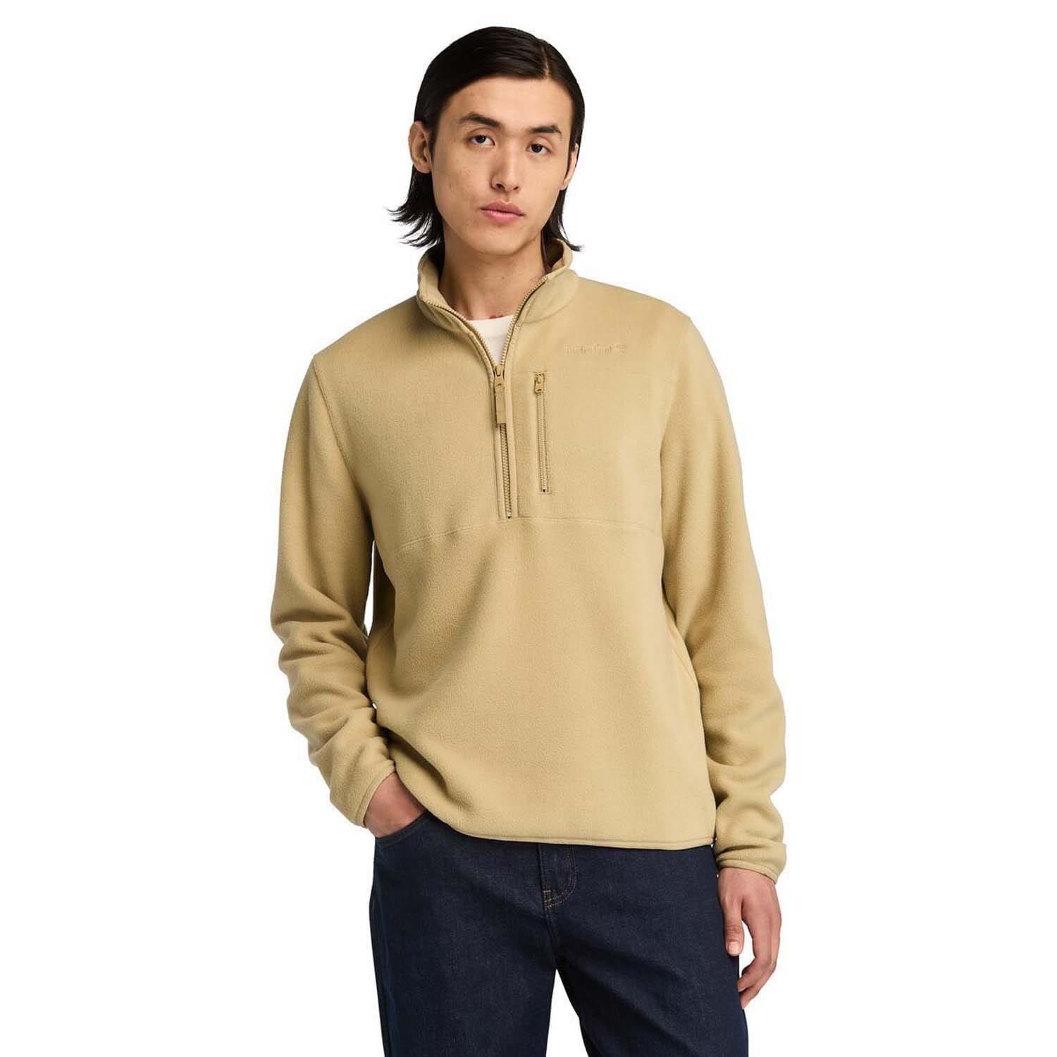Mens Timberland Mt Willard 1/4 Zip Fleece in beige.