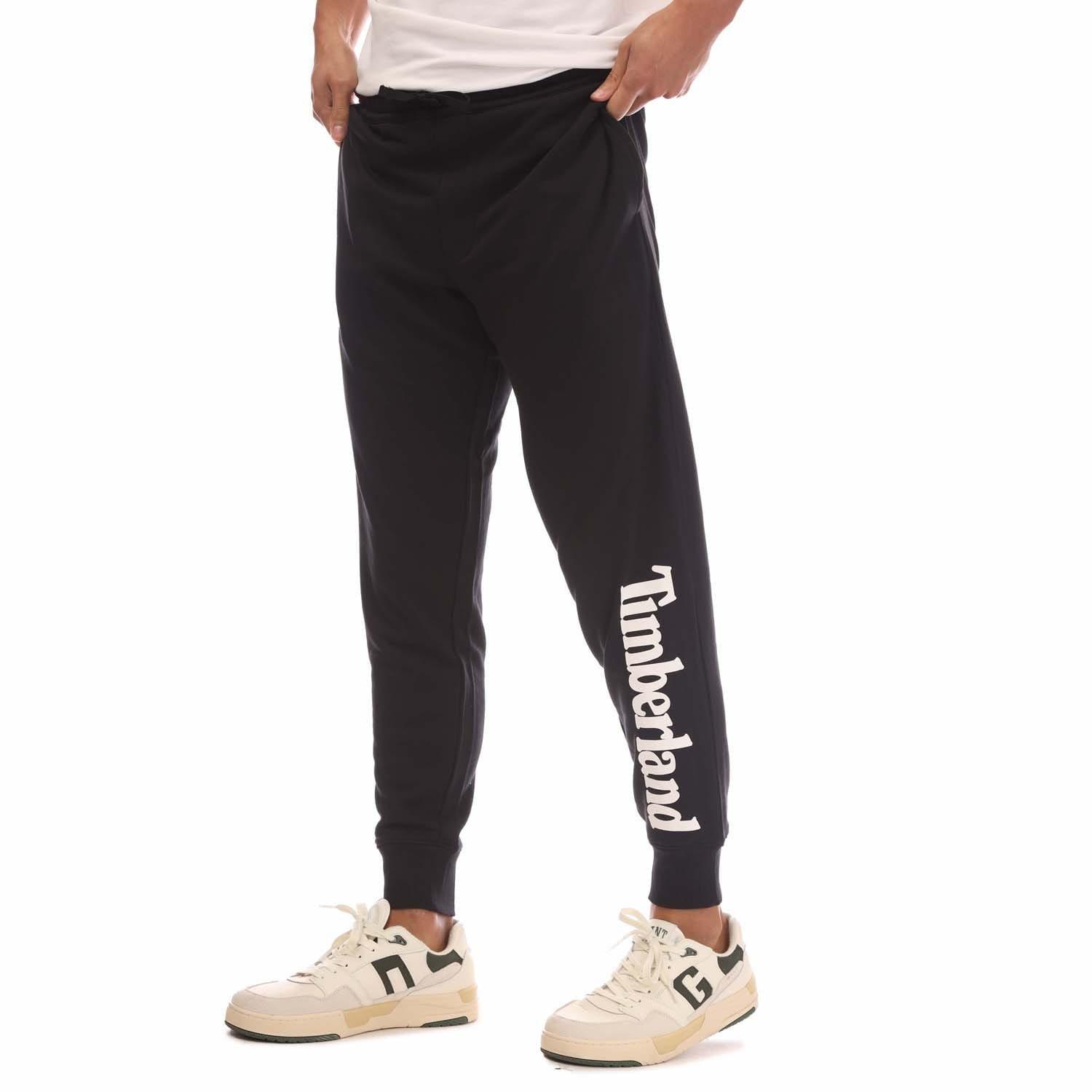 Mens Timberland Logo Sweatpants in black.