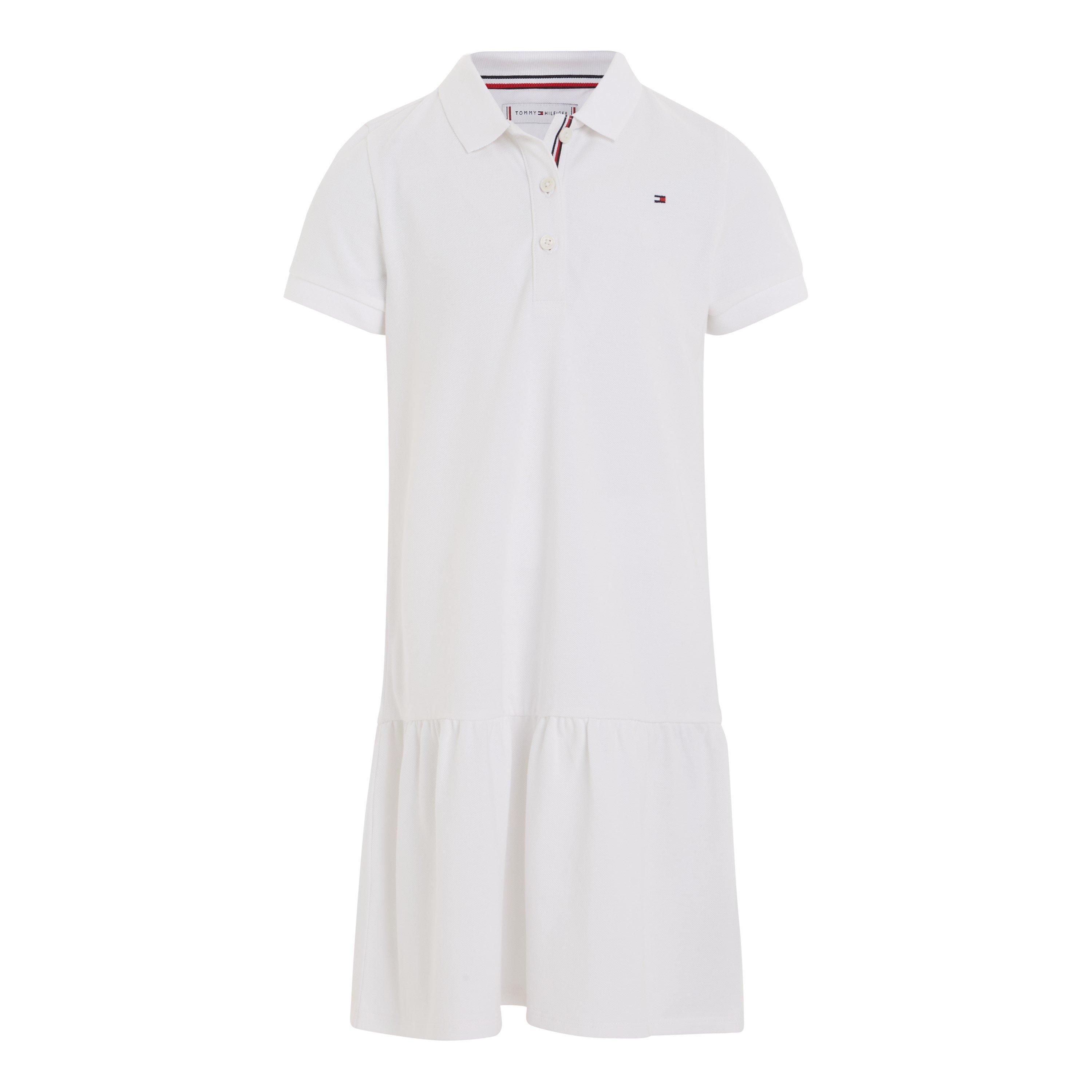 Tommy Hilfiger a pioneer of the 'Classic American Cool' style presents this Essential Dropped Waist Polo Dress for your mini-me this summer. Made from soft and luxurious stretch cotton, this dress offers a comfortable fit that adapts to your child's movements, without compromising on style. The polo collar and three-button placket add sophistication, while the pretty dropped waist and ruffle hem create a playful and girlish silhouette. Designed with the modern child in mind, this dress features a flattering A-line skirt and knee-length cut, allowing easy movement while maintaining the dress's elegant style. There are signature tape details on the inside of the neckline and placket, adding to the designer appeal of this dress. The discreet Tommy Hilfiger branding and the iconic flag embroidery on the chest further enhance the luxurious appeal of this dress. Composed of 96% cotton, 4% elastane. Machine Washable, Follow Care Instructions