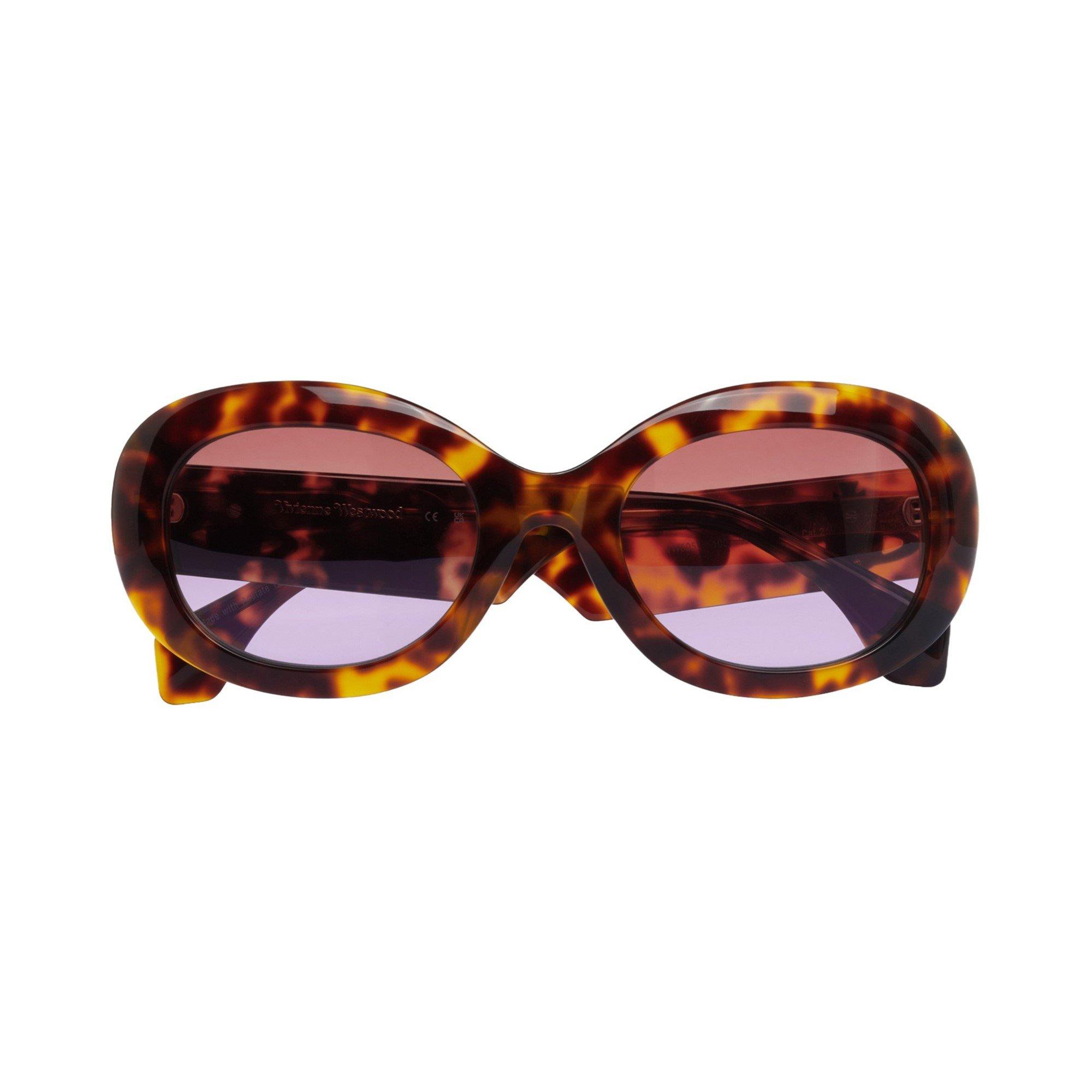 These oval sunglasses, with a slight vintage feel is shown here in classic tortoiseshell Acetate Renew, which is sustainable. The large silver 'orb' logo on each temple leaves no doubt that you're wearing a classic from Vivienne Westwood.