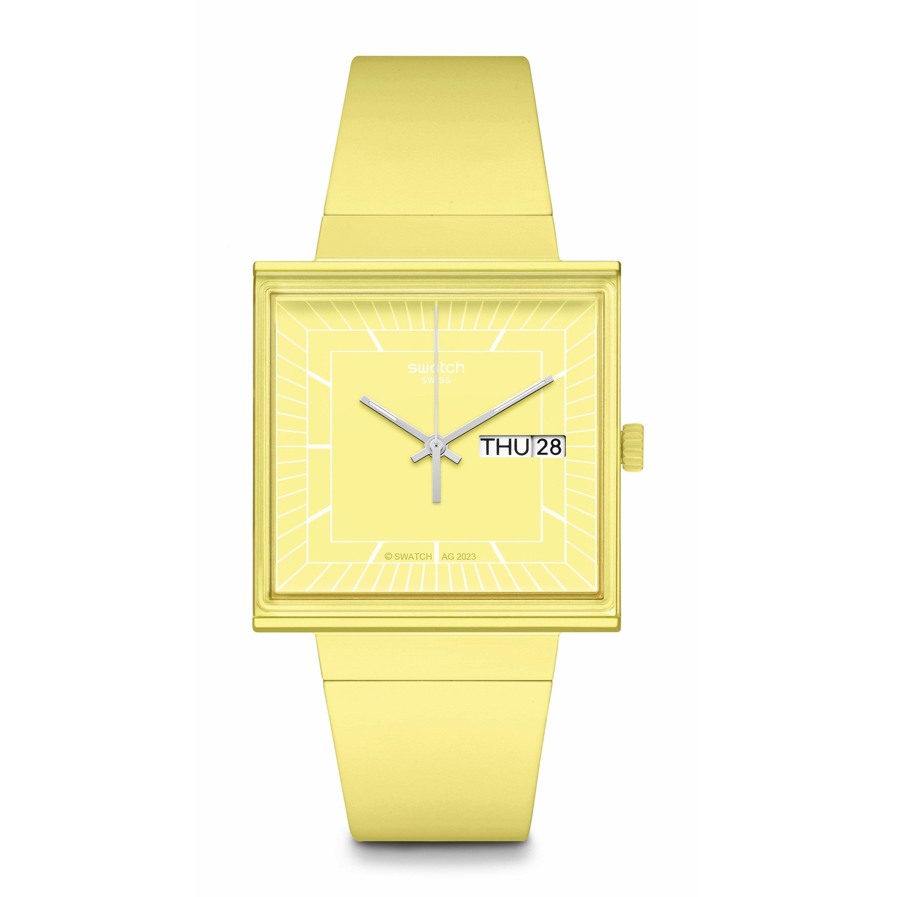 Swatch's What If? Analogue Quartz Wristwatch pairs minimalist design with playful functionality. The unisex adult timepiece features Swatch's clean lines and reliable quartz movement, delivering precision with character.